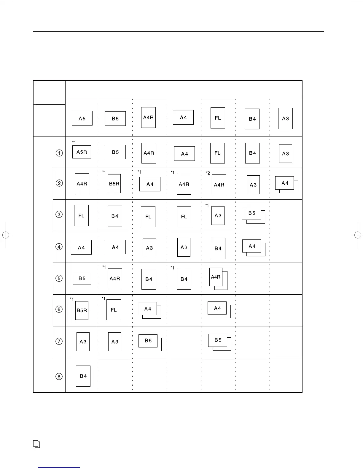 *2: If the received image of Folio size documents is automatically reduced to fit onto the paper, it will be accomplished onto A4R size paper.