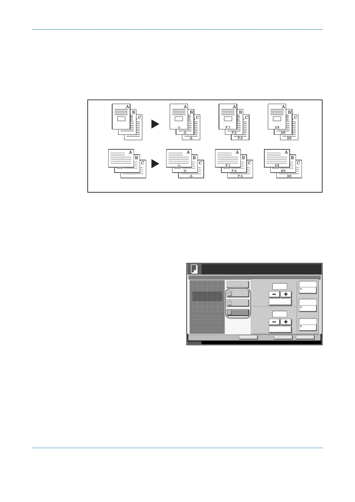 Use the procedure below to insert page numbers on your copies.