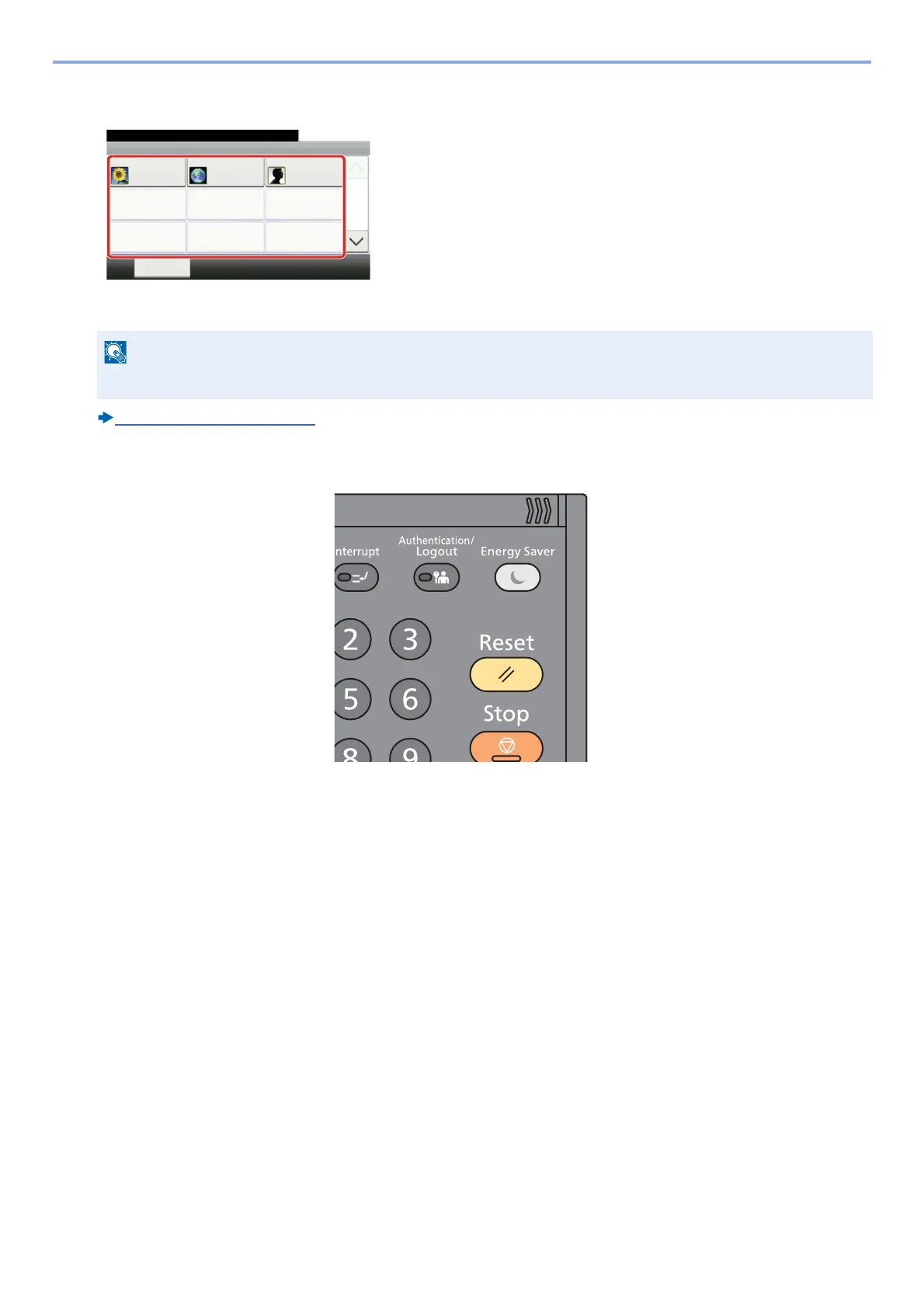 To logout from the machine, select the [Authentication / Logout] key to return to the login user name/login