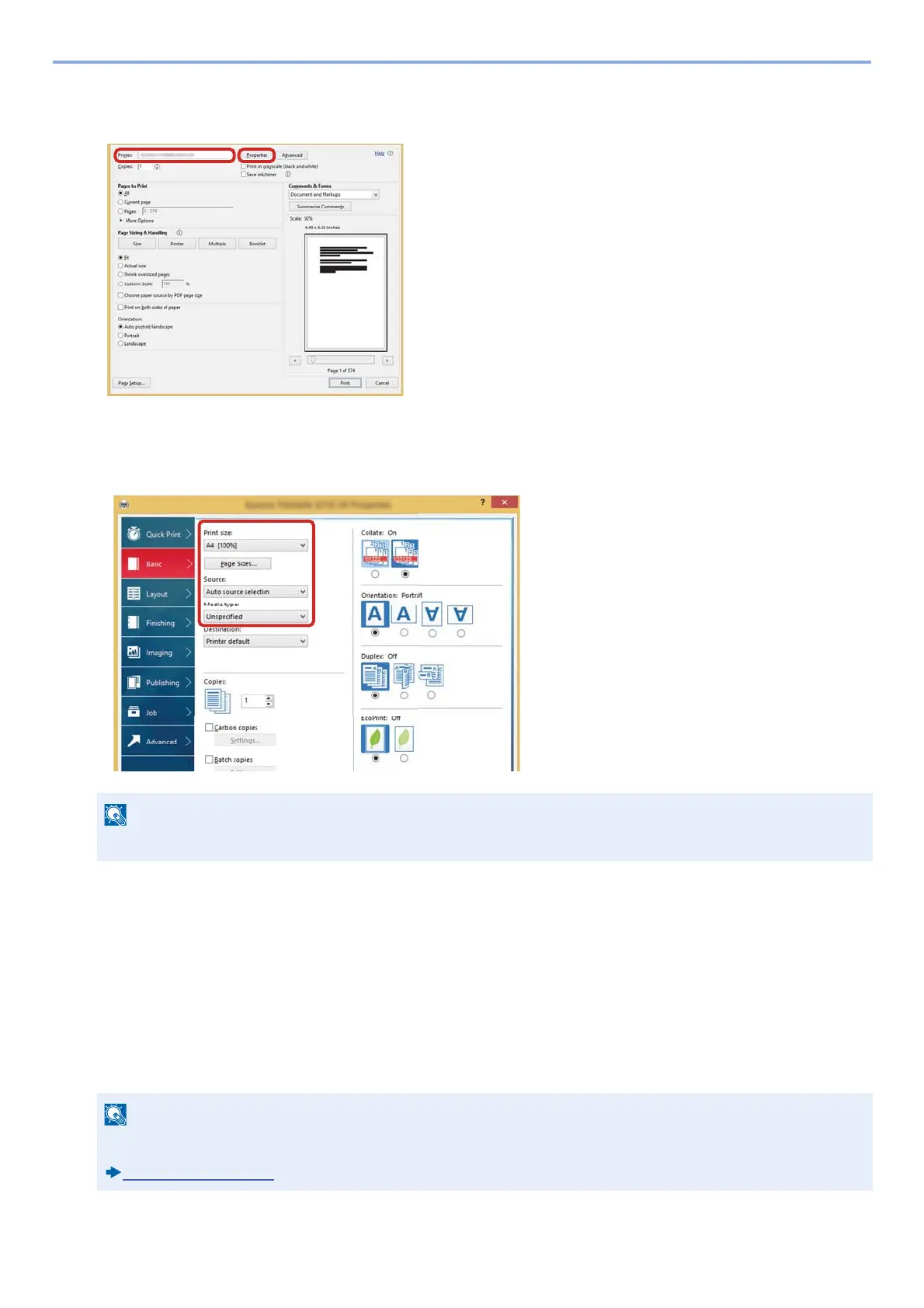 To print on the special paper such as thick paper or transparency, click "Media type:" menu and select the media type.