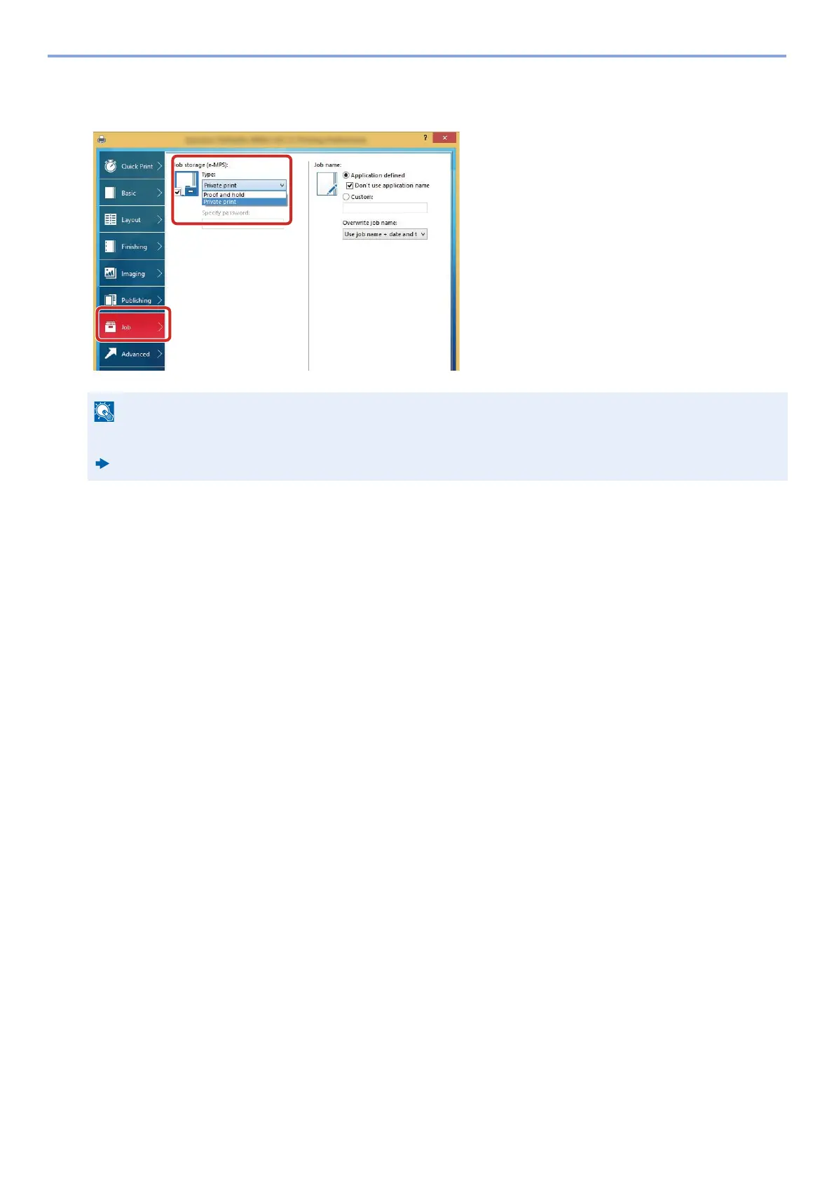 Click the [Job] tab and select the [Job storage (e-MPS)] check box to set the function >