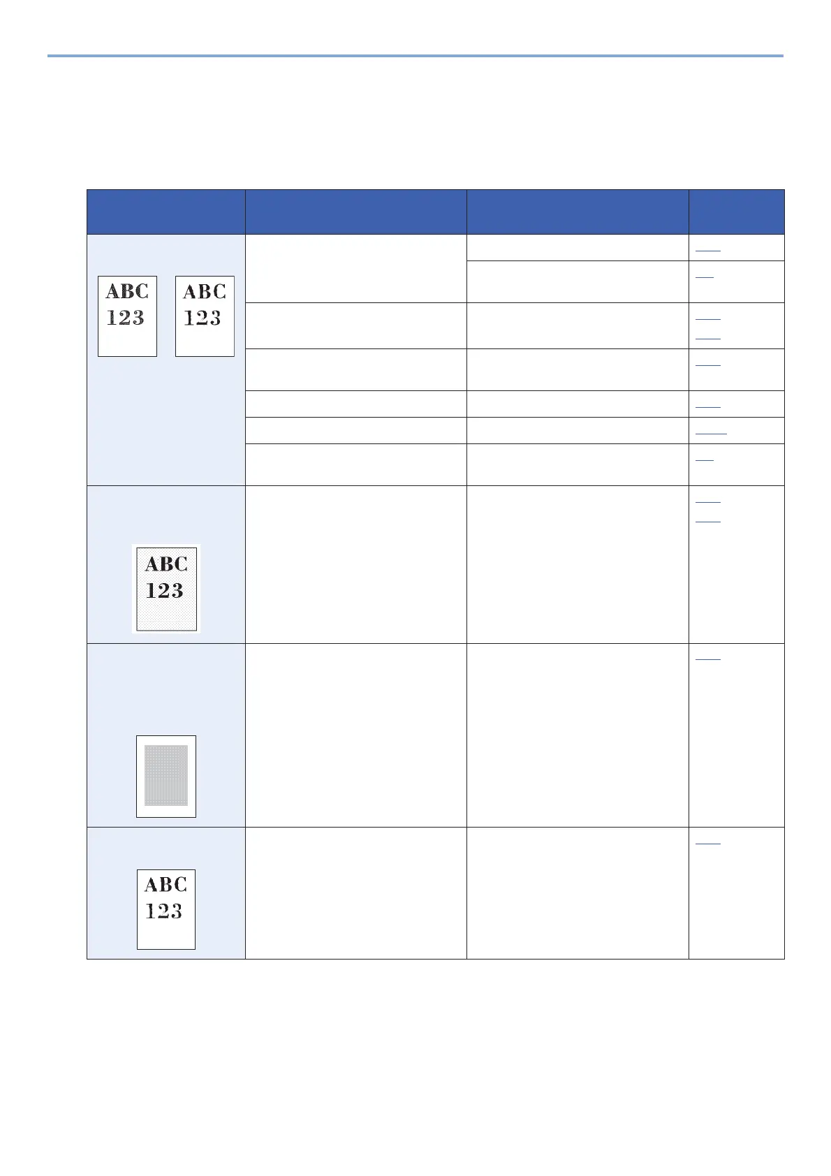 Image trouble is indicated by the symptoms in the table below. Implement appropriate procedures.