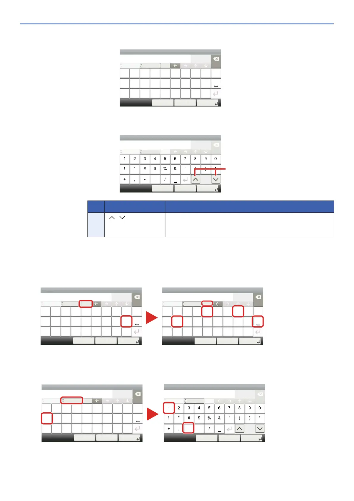 13 [ ]/[ ] To enter a number or symbol not shown in the keyboard, select the