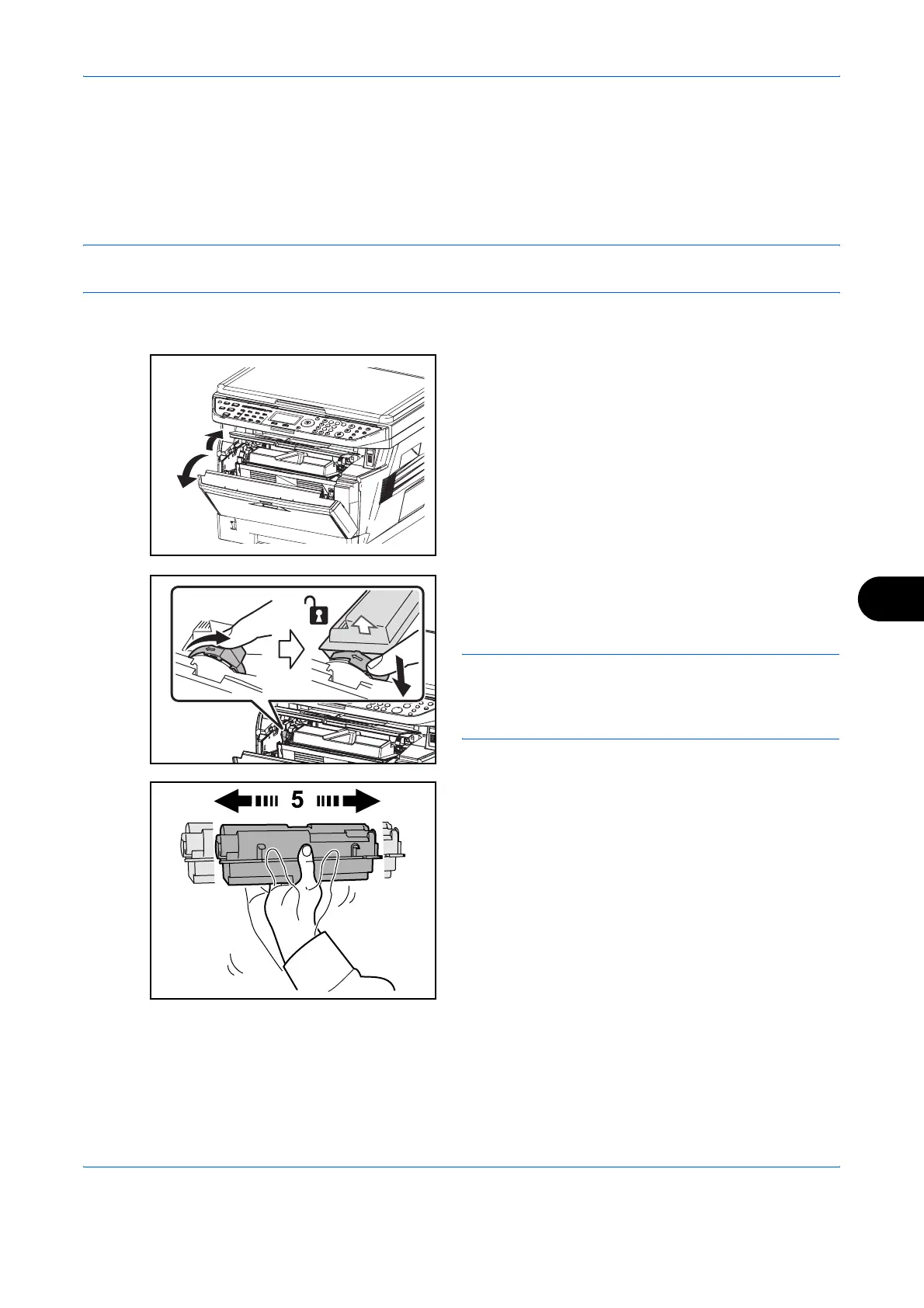 Shake the new toner container at least 5 times as