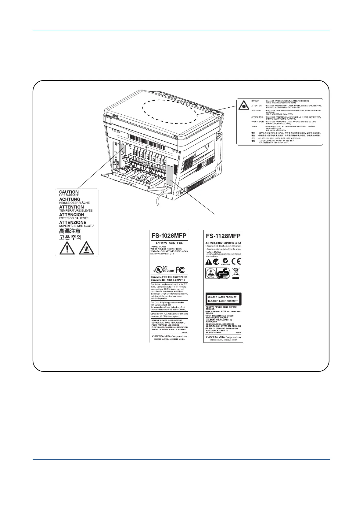 Caution / Warning labels have been attached to the machine at the following locations for safety purposes. Be