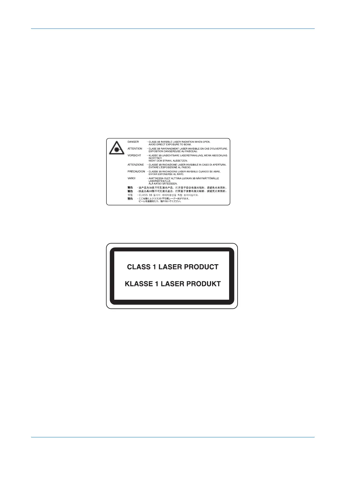 These labels are attached to the laser scanner unit inside the machine and are not in a user access area.