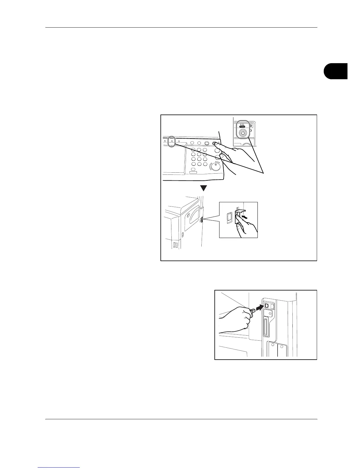 When the machine is powered up, first press the Power key on the