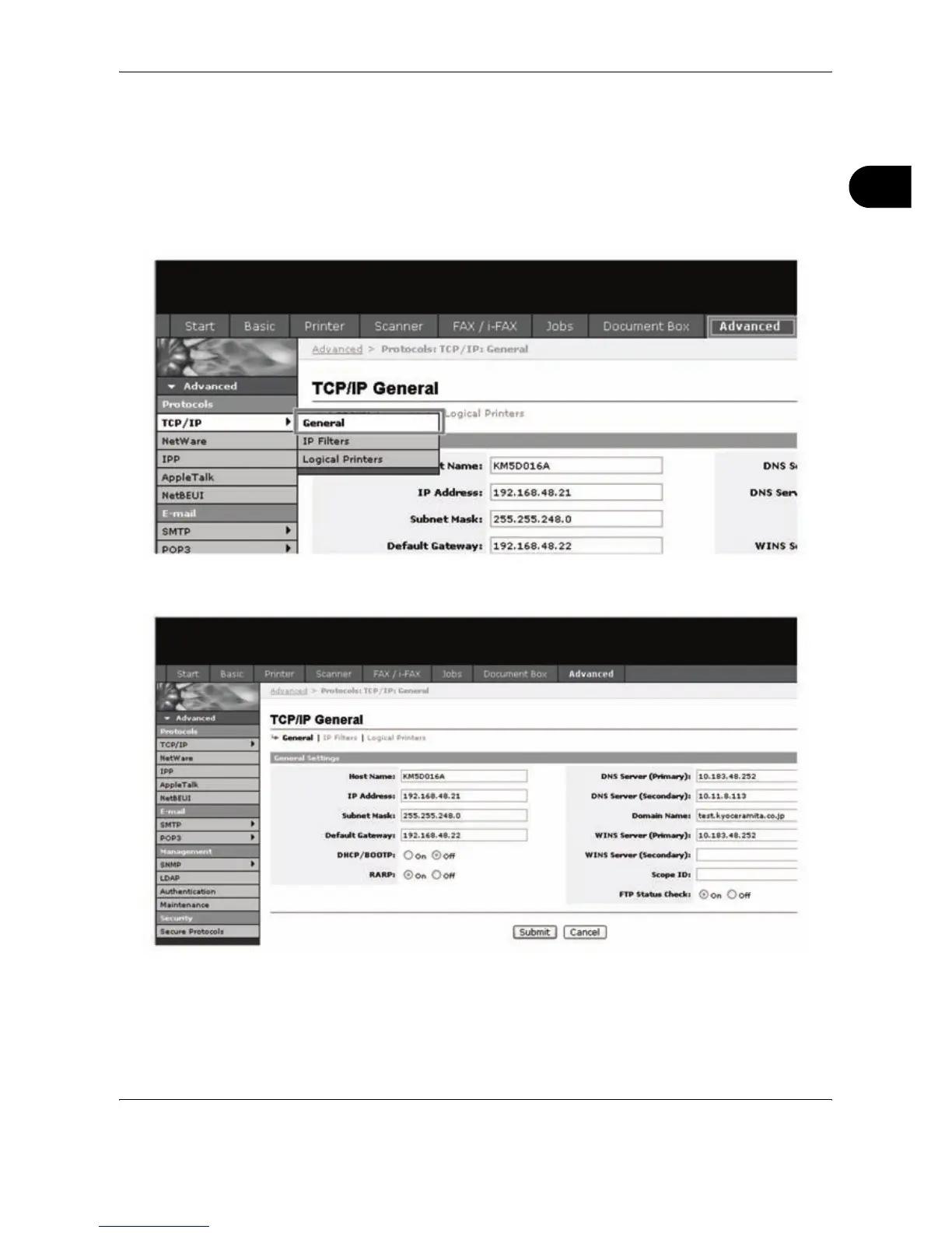Olivetti d-Copia 3000MF - TCP;IP Settings