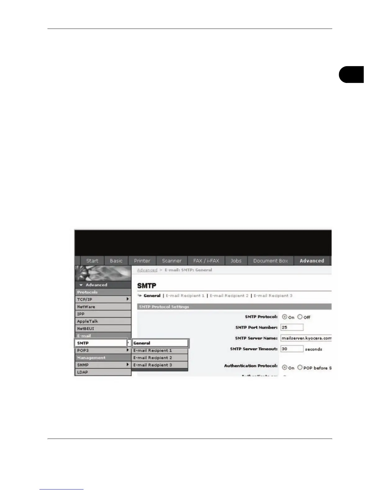 Click Advanced -> SMTP -> General.
