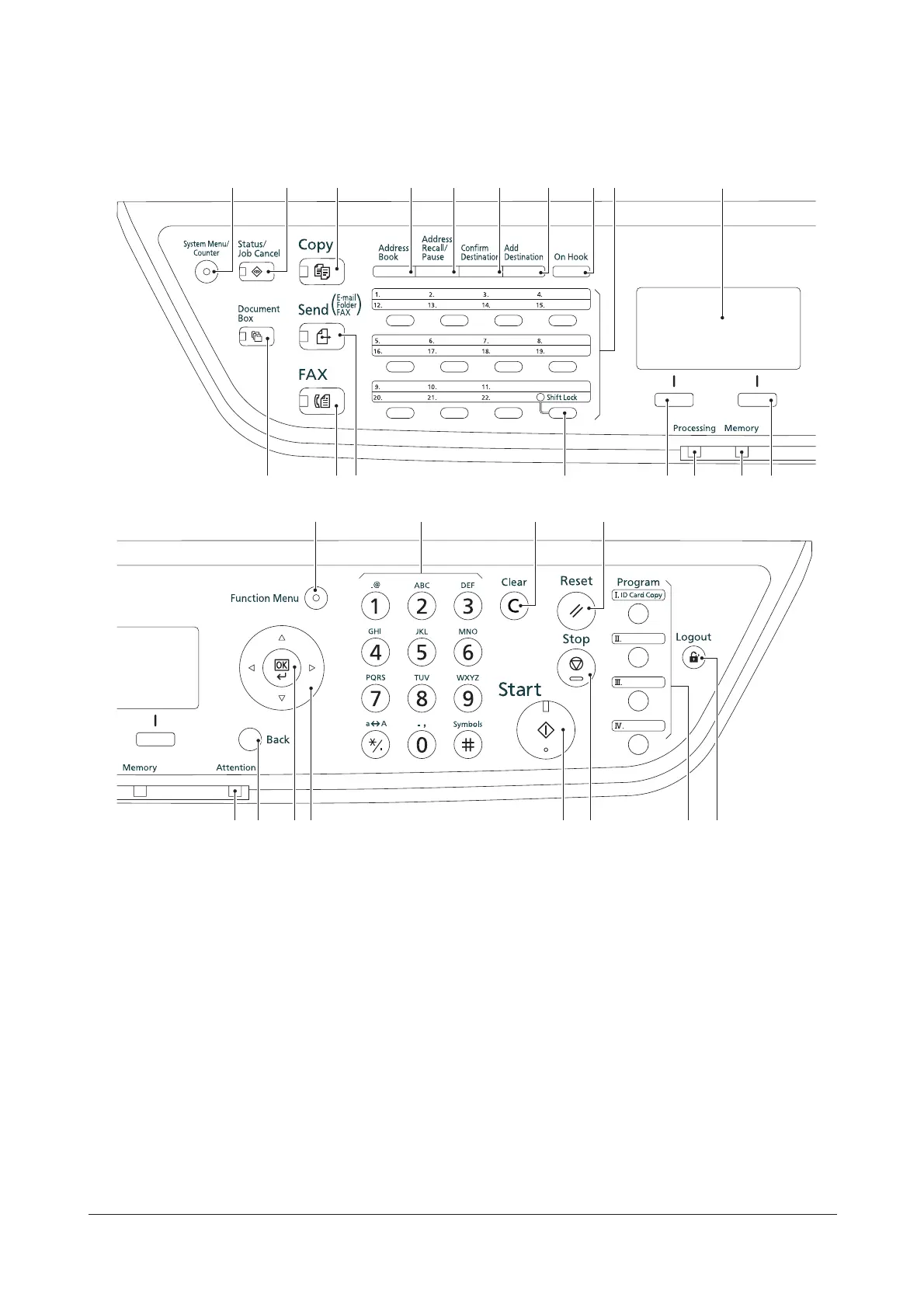 11. Document Box key (LED)
