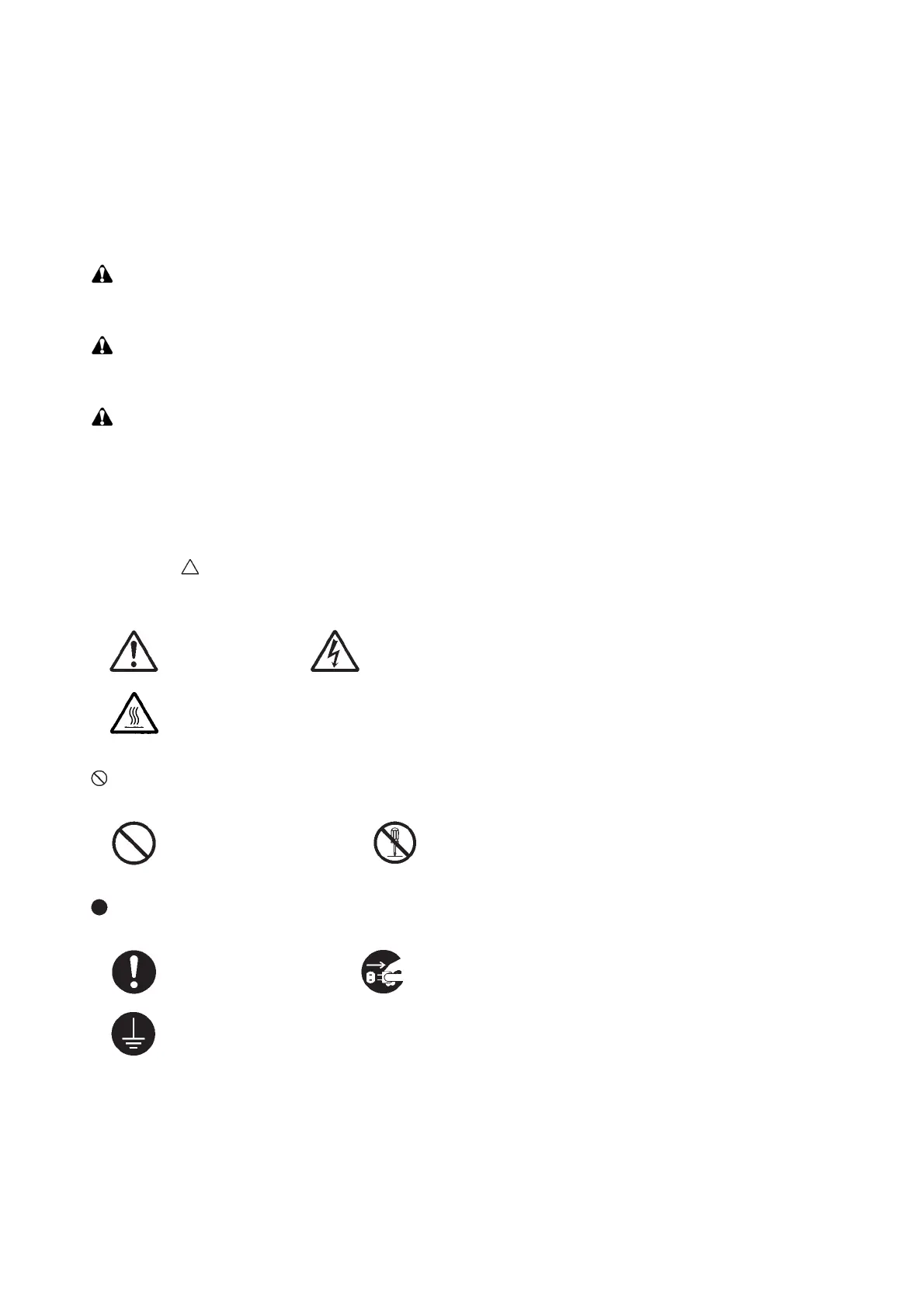 The triangle ( ) symbol indicates a warning including danger and caution. The specific point of attention is