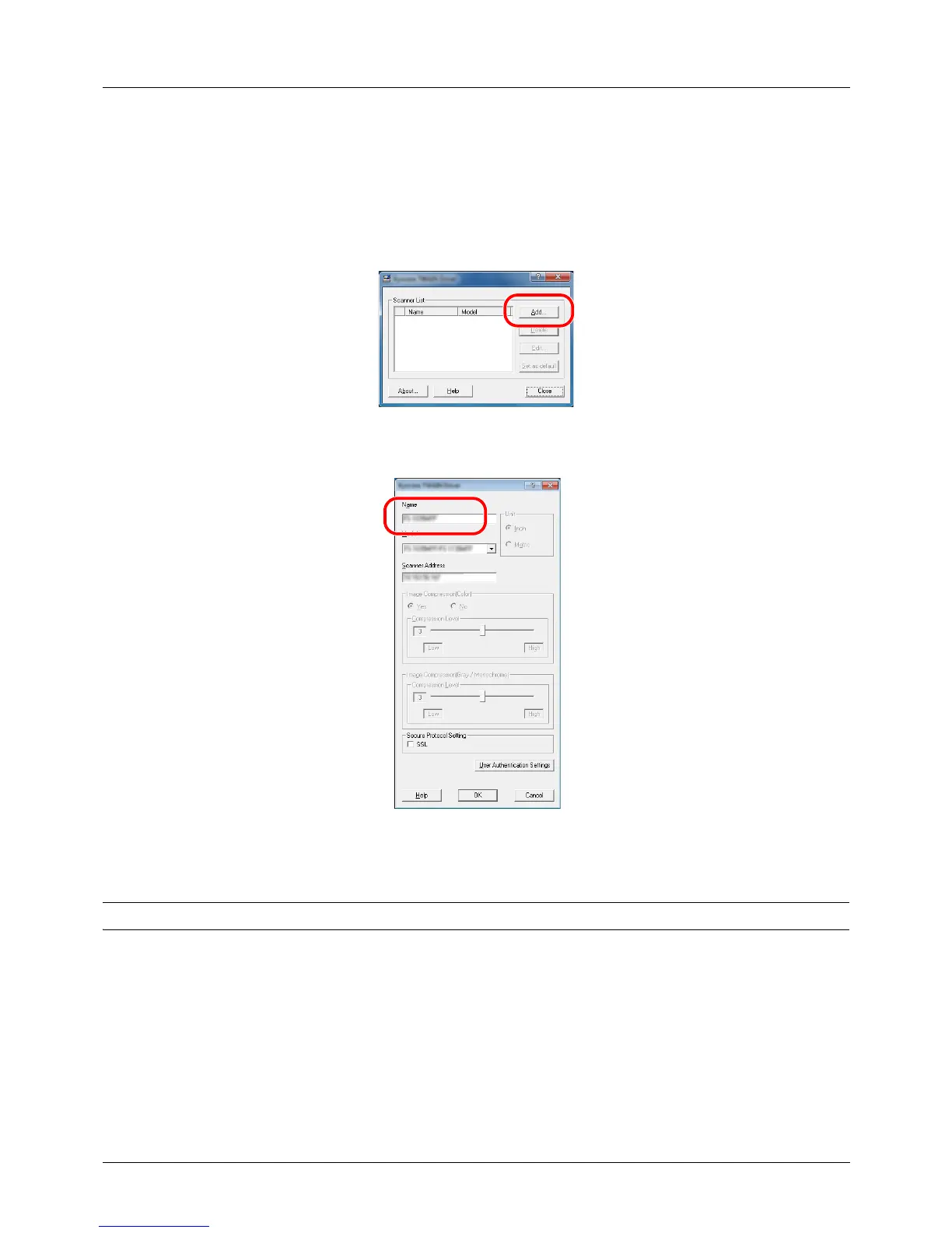 5 Enter the machine's IP address or host name in the Scanner Address.