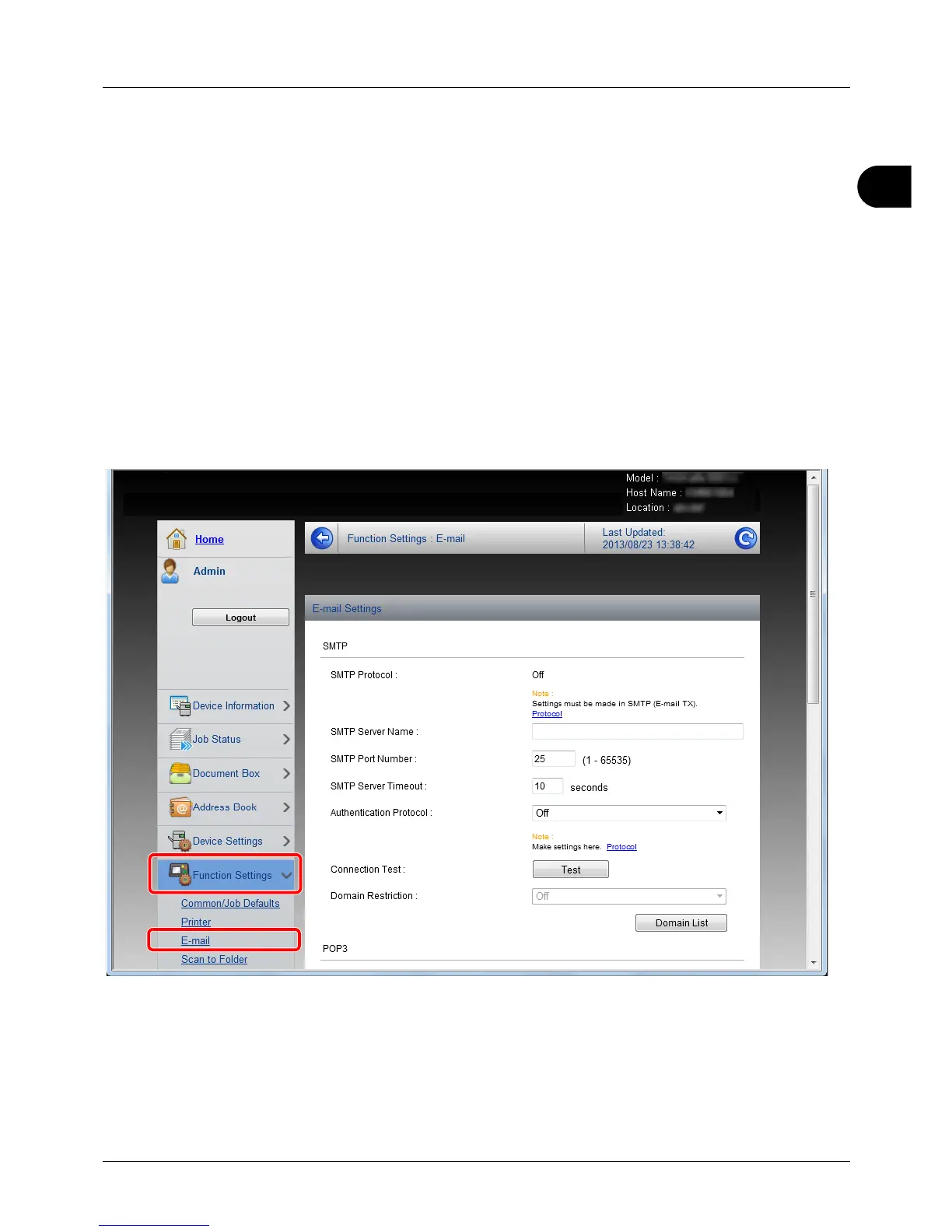 To use this function, this machine must be connected to a mail server using the SMTP protocol.
