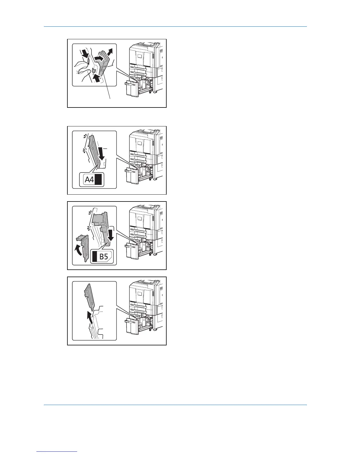 5 Adjust the Paper Size Guide (B) to the paper size.