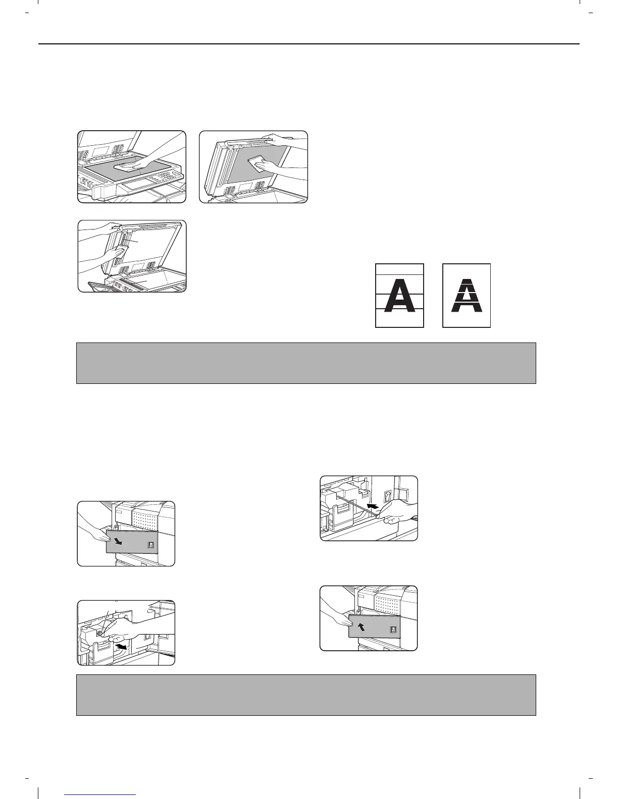 lines in scanned images. These will show up as defects when the images are printed. Always keep these parts clean.