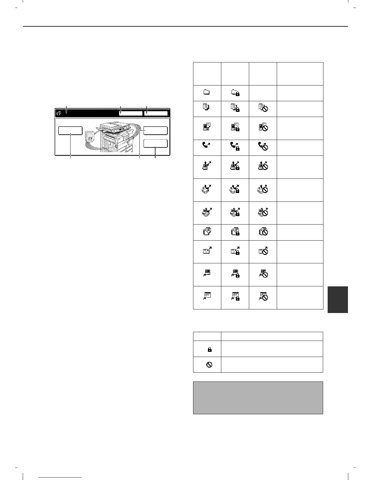 shows the copy mode screen, image send mode, or the