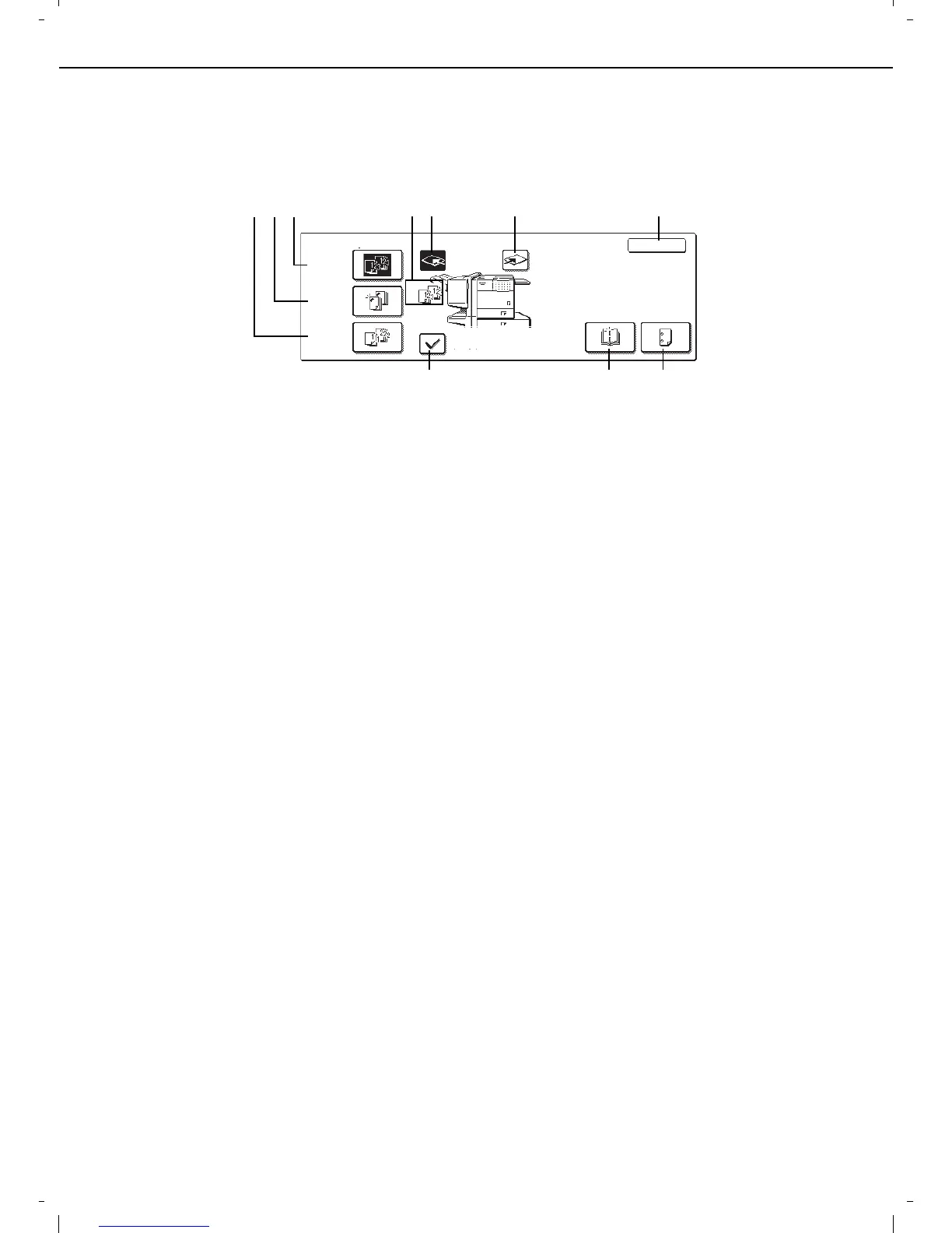 When [OUTPUT] is selected on the main screen of copy mode, a screen for making selections for sort, group, staple