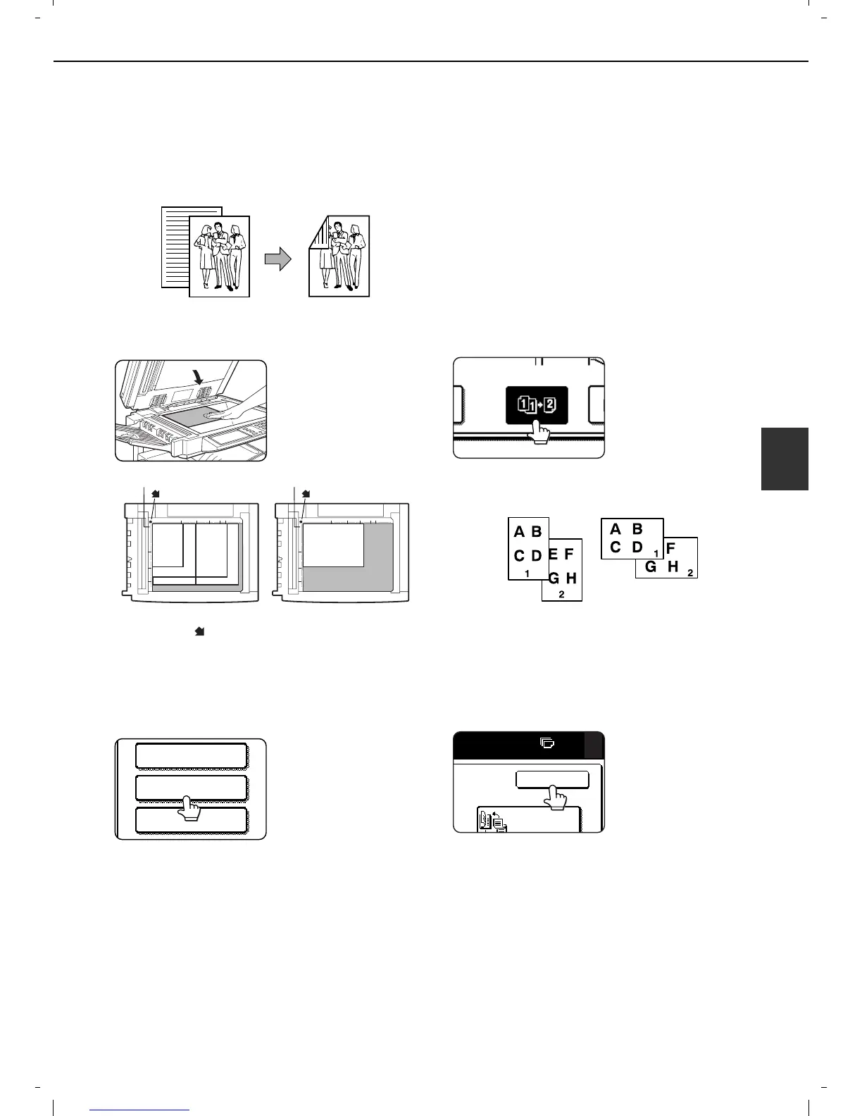 When the optional duplex module is installed, the following automatic two-sided copying can be performed. The