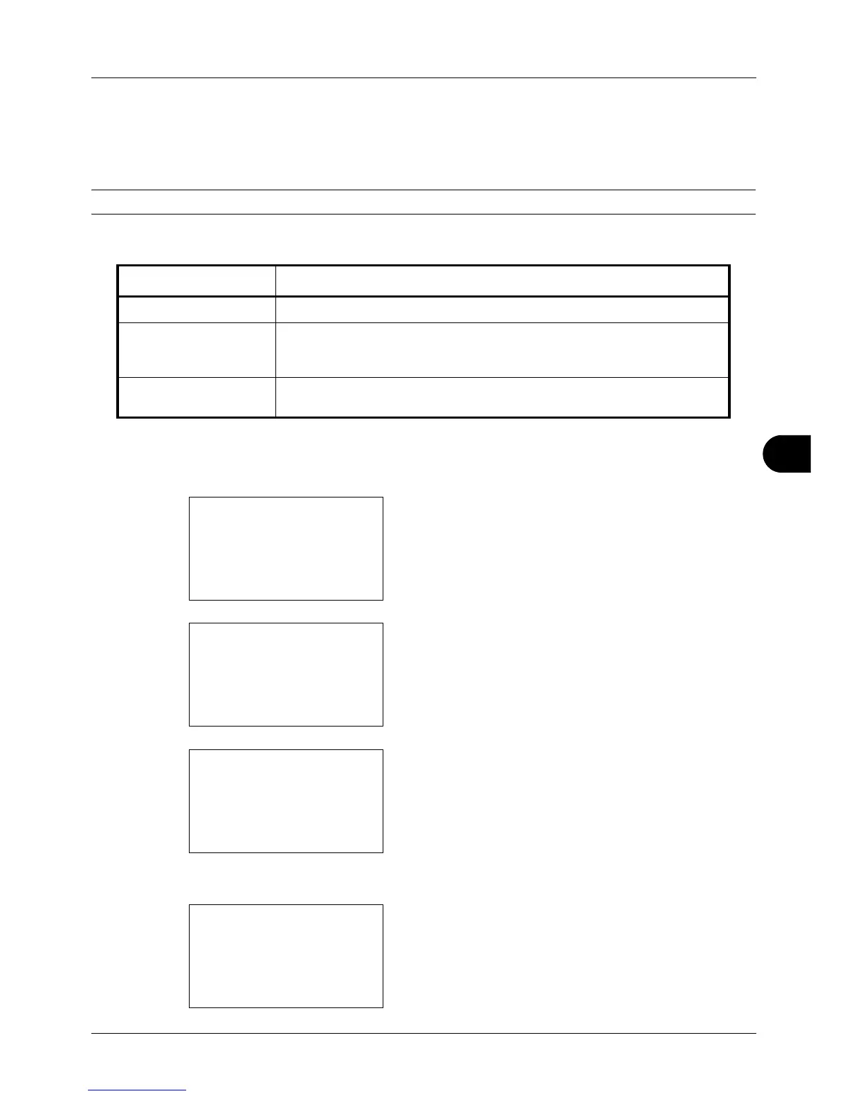 The table below shows the available settings.