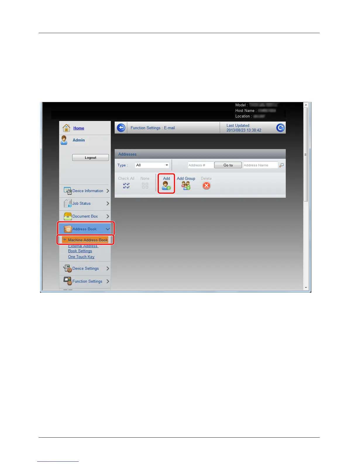 2 From the [Address Book] menu, click [Machine Address Book].