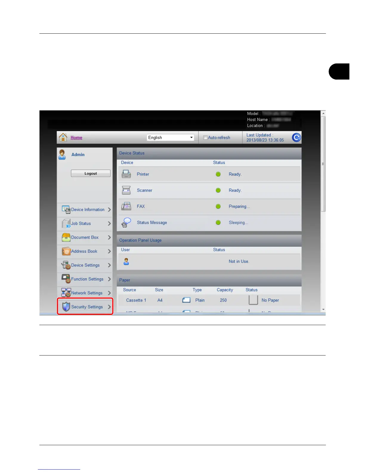 NOTE: The configurable settings within [Device Security], [Send Security], and [Network Security] can also be