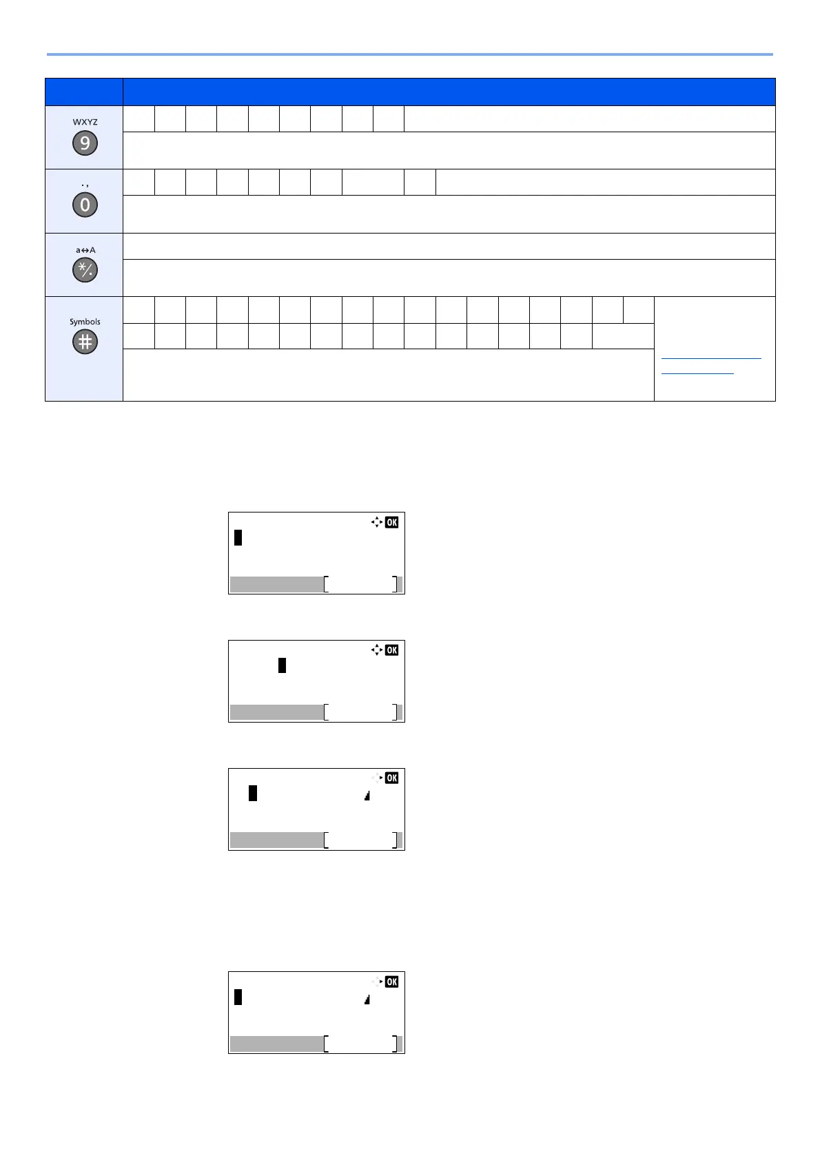 2 Press the [▲], [▼], [►] or [◄] key to move the cursor and select the symbol to be entered.