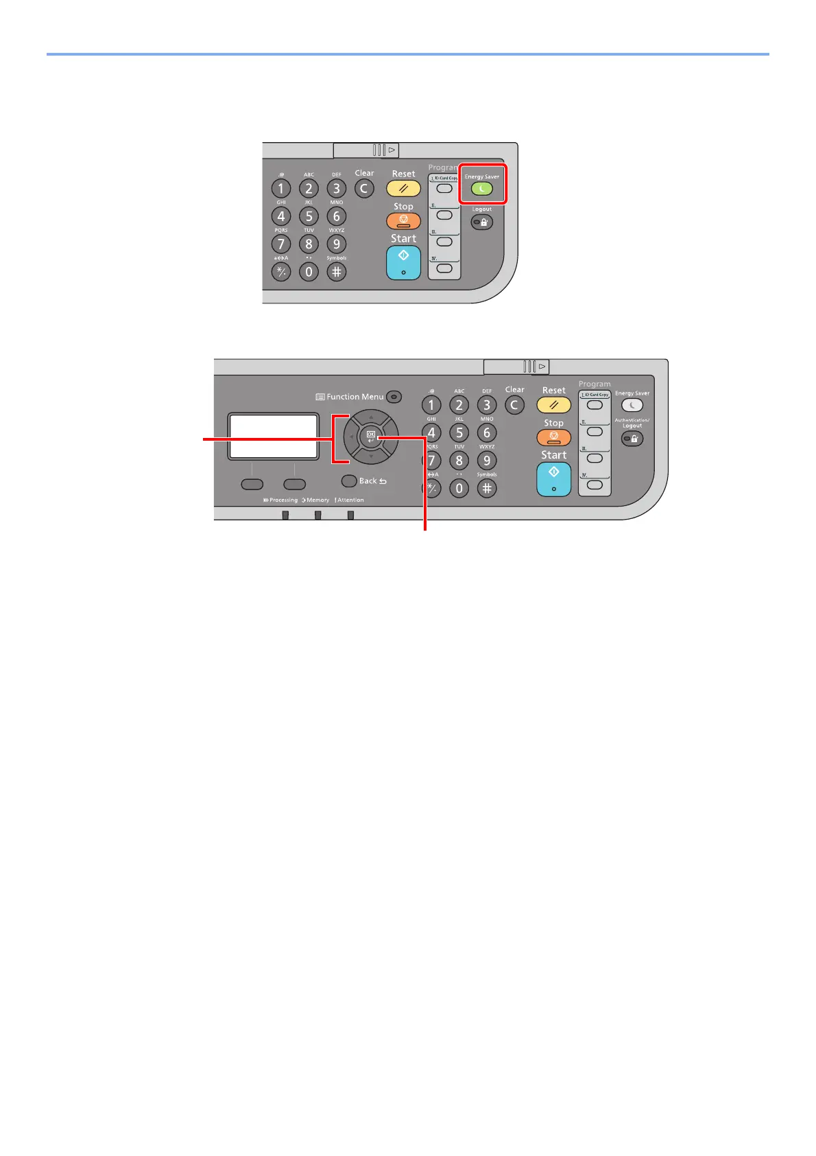 Operation panel keys that are pressed are outlined in red.