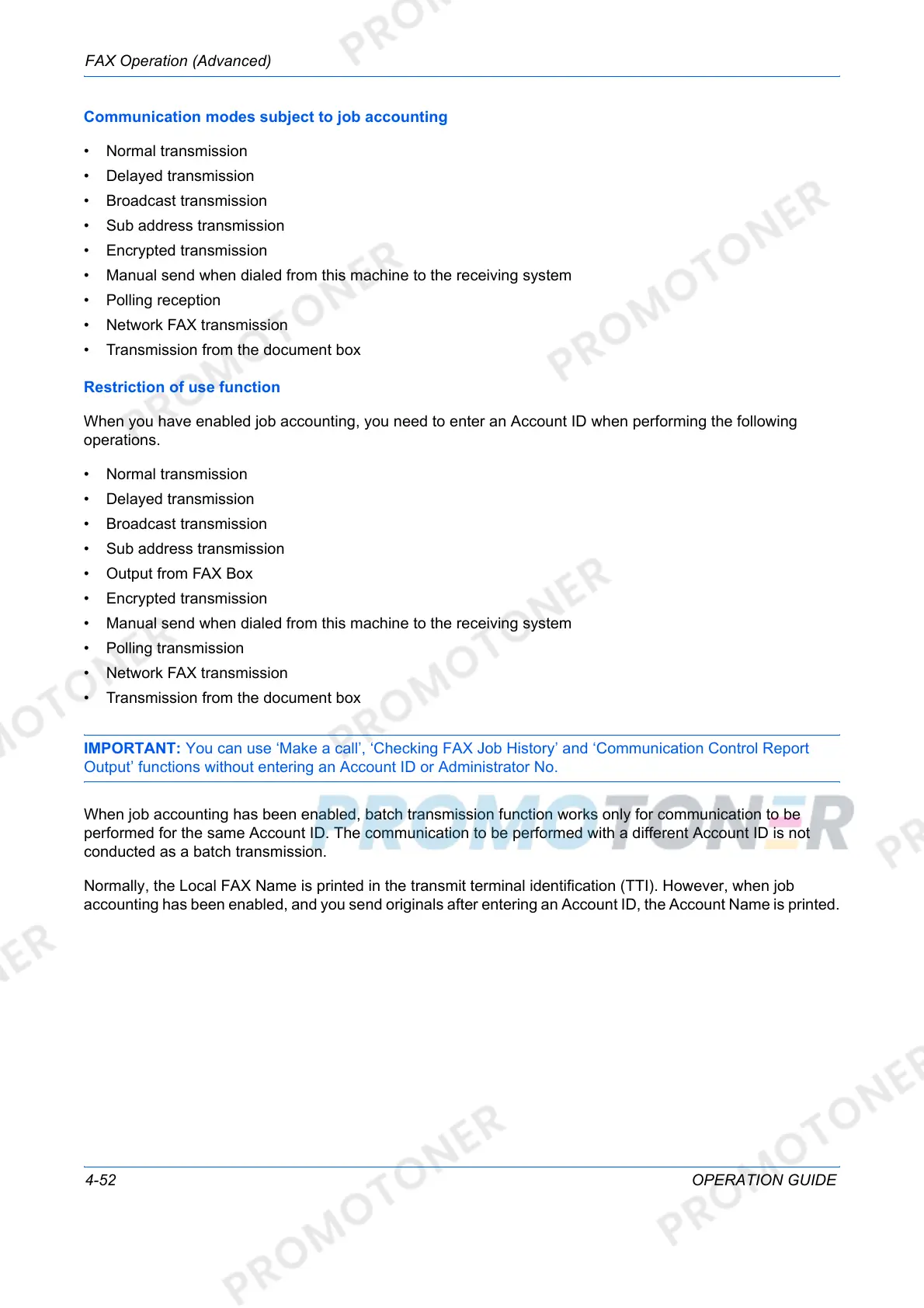 Output’ functions without entering an Account ID or Administrator No.