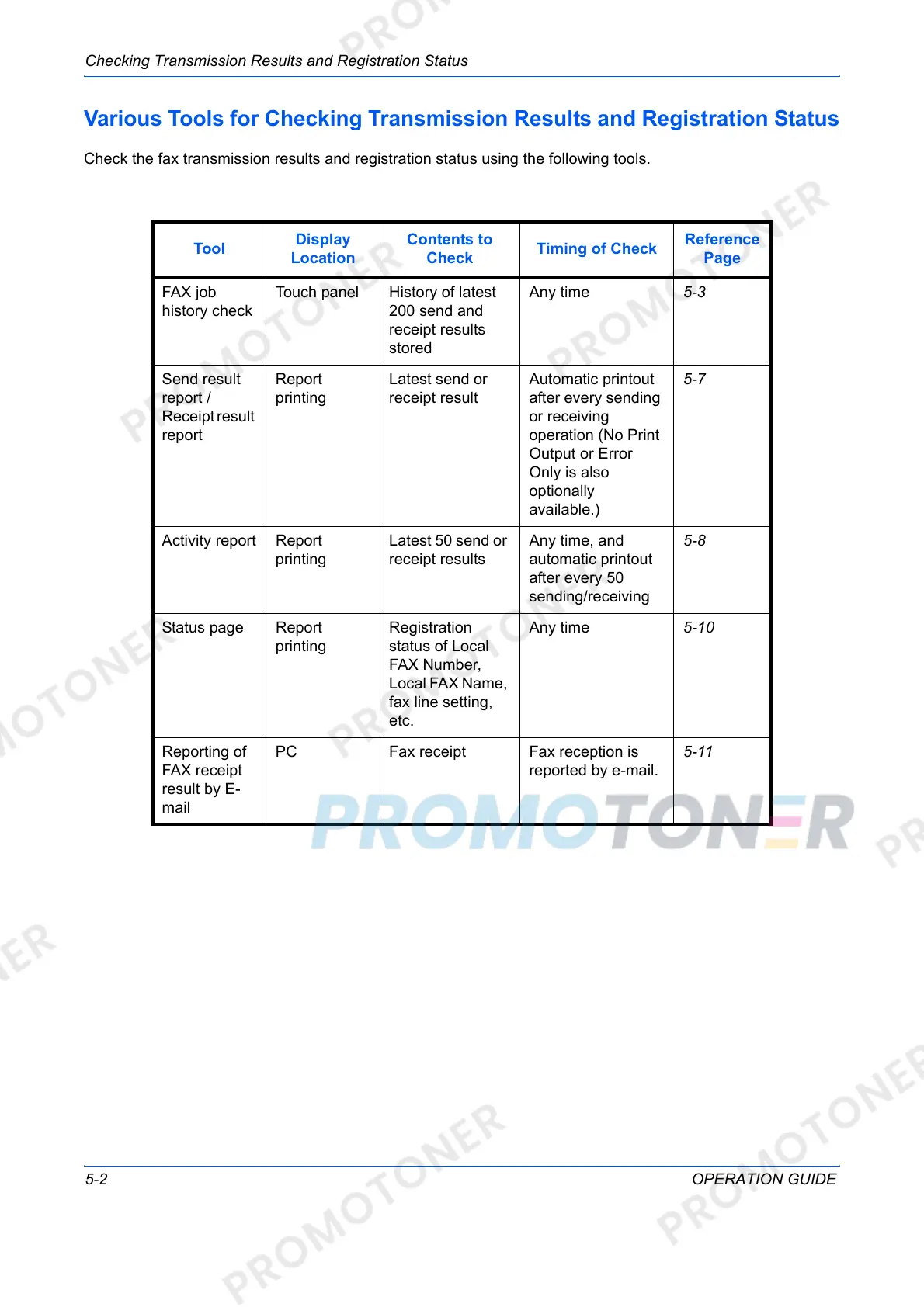 Olivetti d-Copia 4200MF - Various Tools for Checking Transmission Results and Registration Status