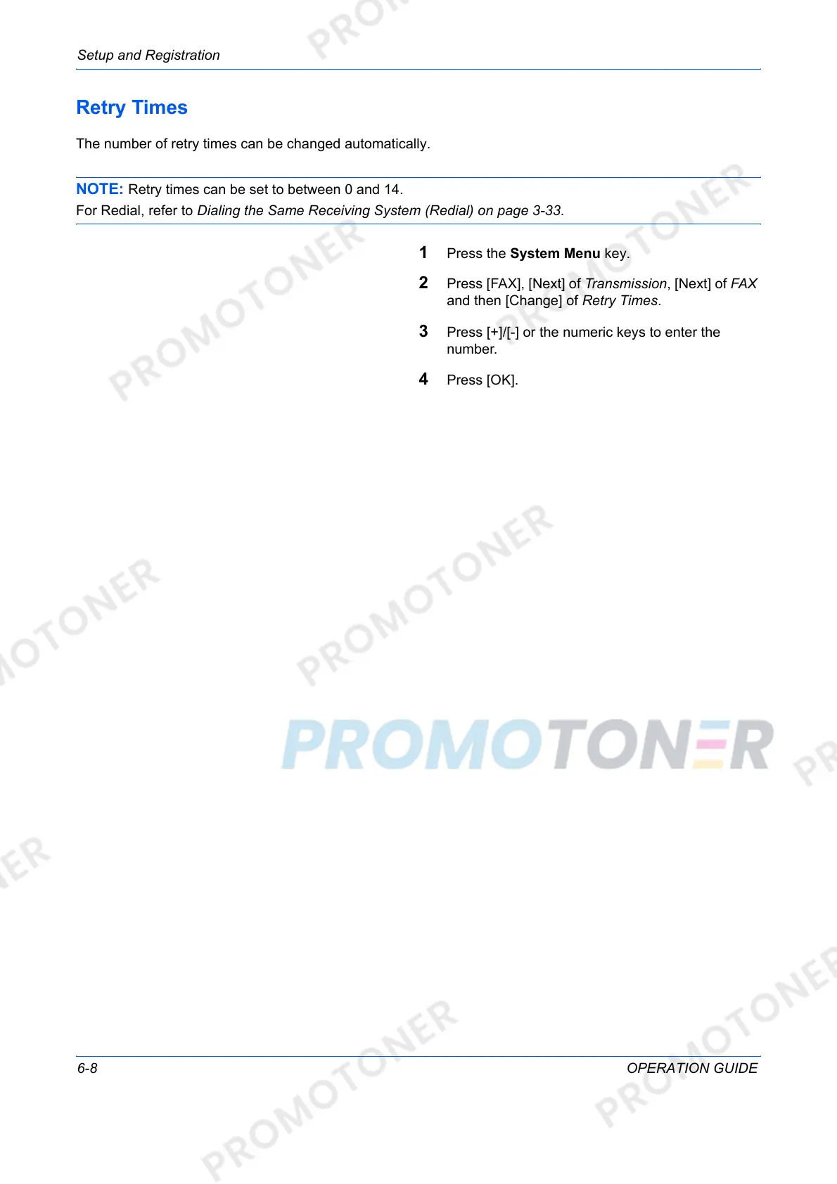 NOTE: Retry times can be set to between 0 and 14.