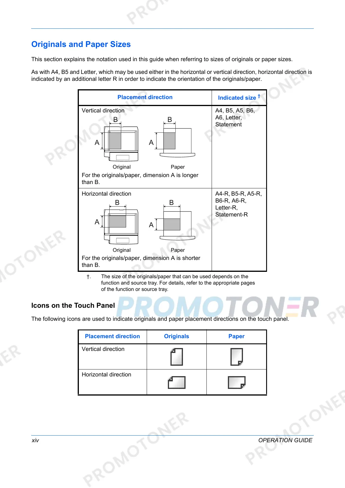 †. The size of the originals/paper that can be used depends on the
