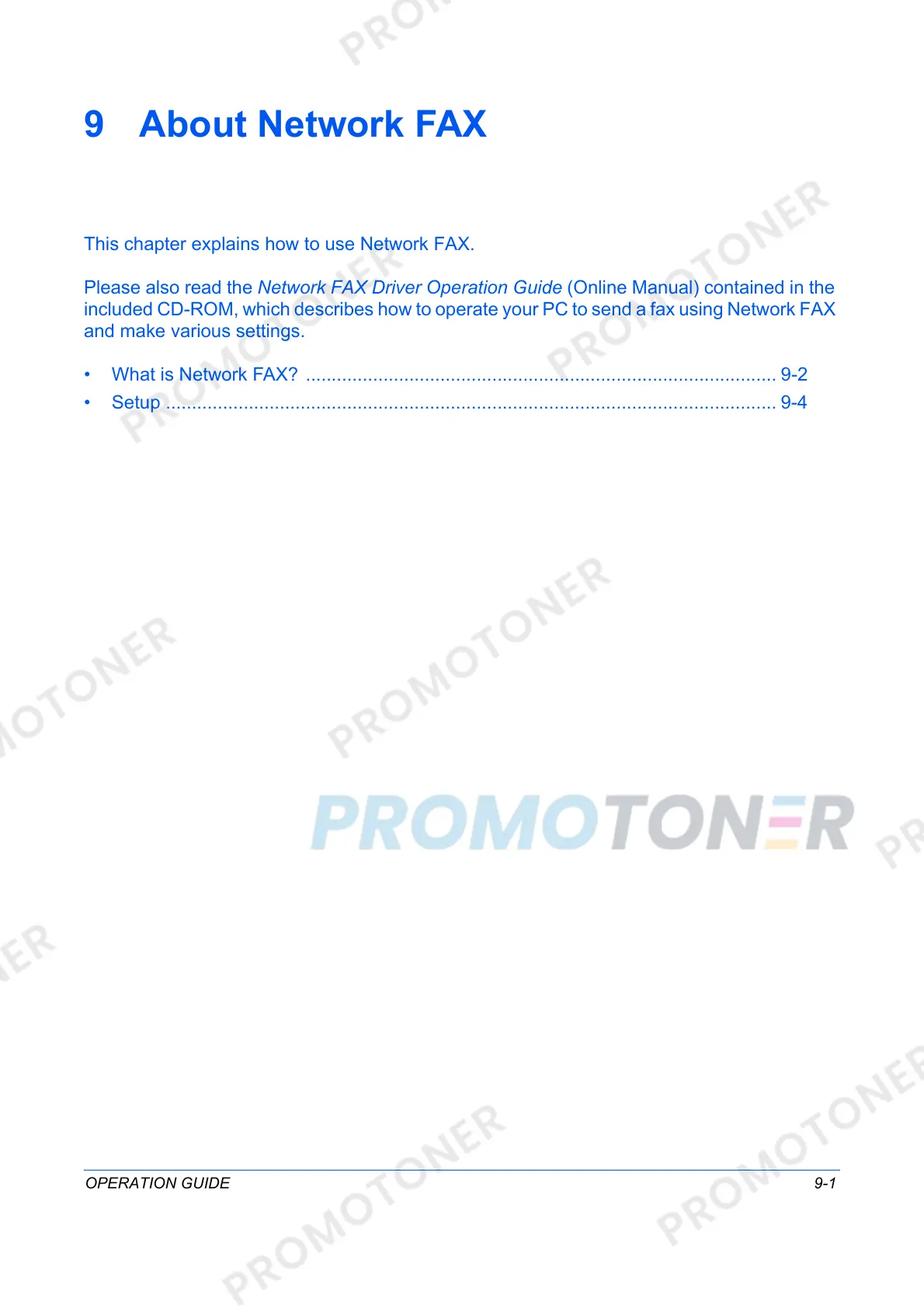 • What is Network FAX? ........................................................................................... 9-2