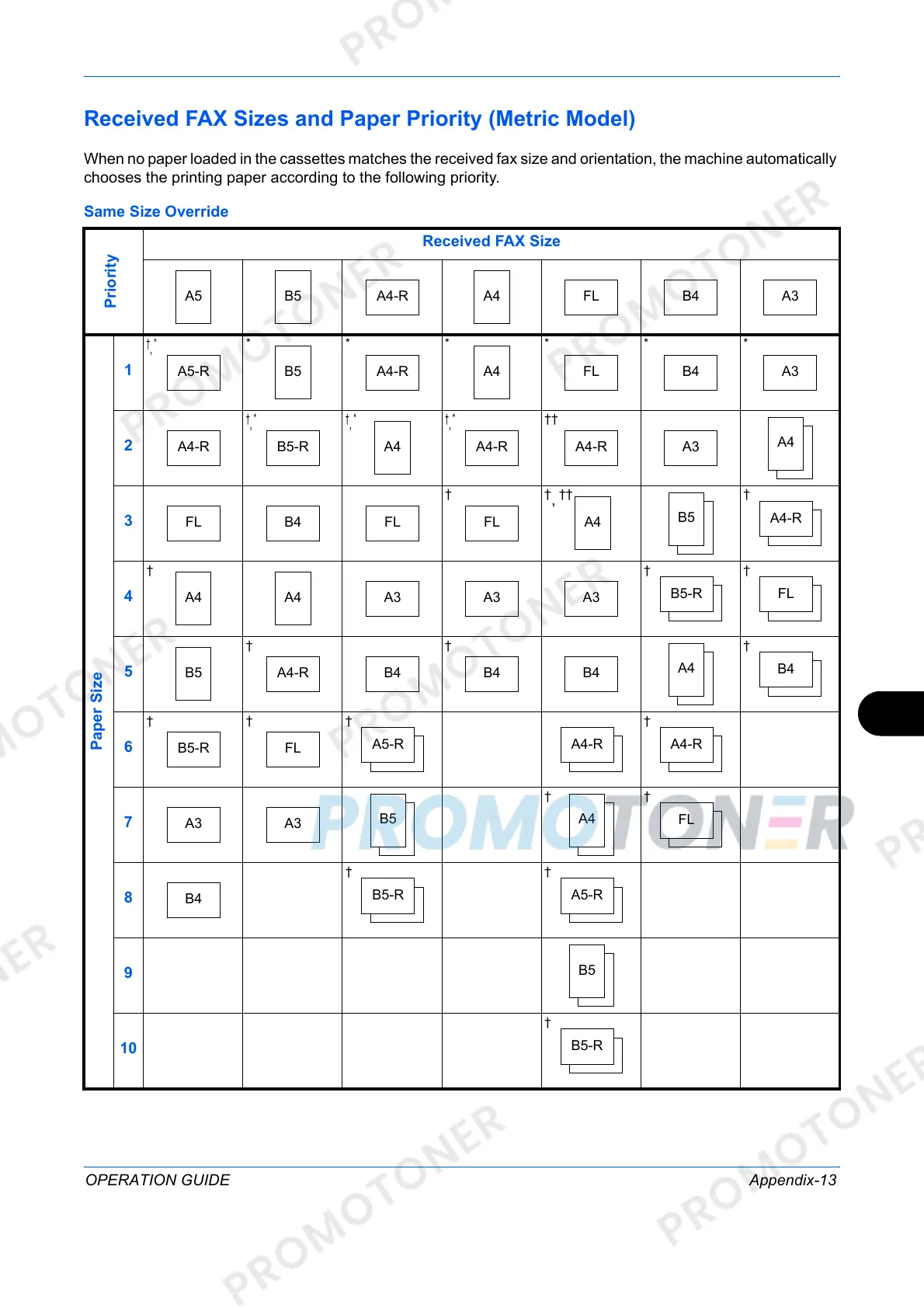 Olivetti d-Copia 4200MF - Received FAX Sizes and Paper Priority (Metric Model)