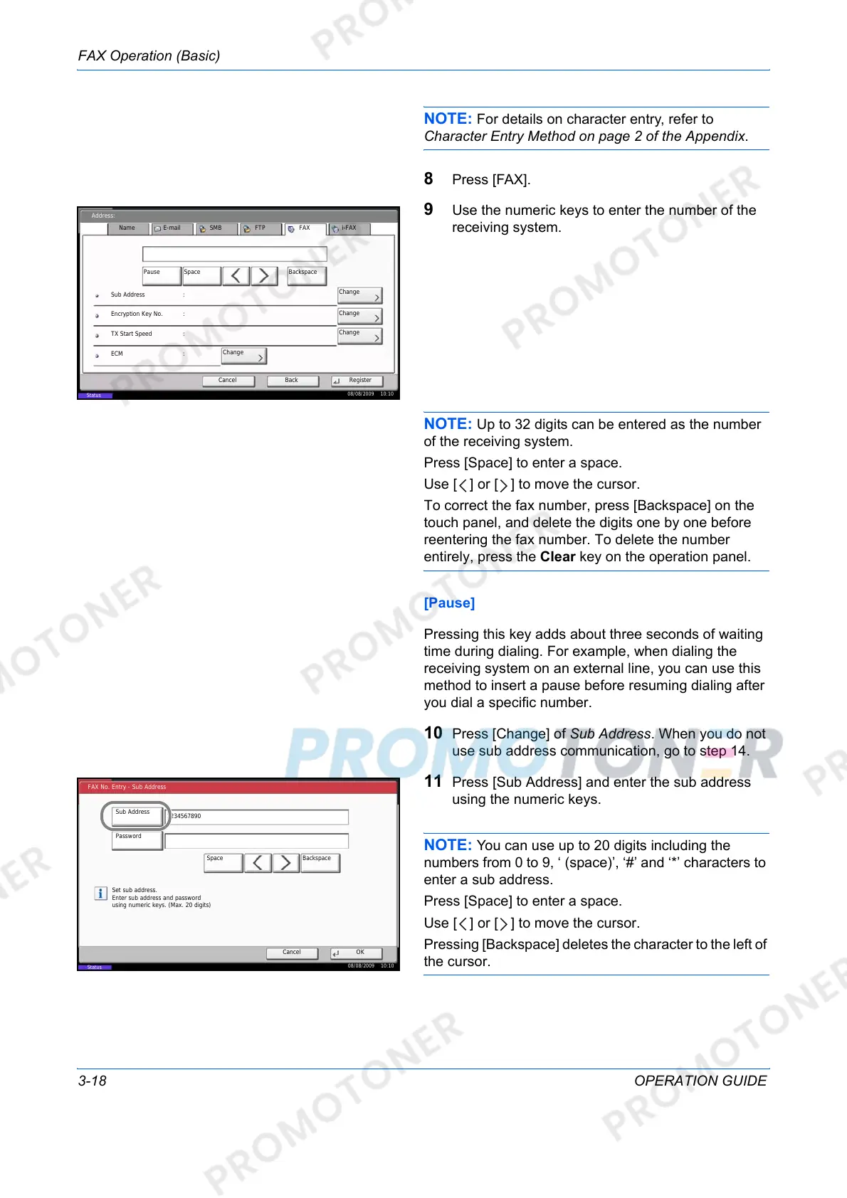 FAX No. Entry - Sub Address