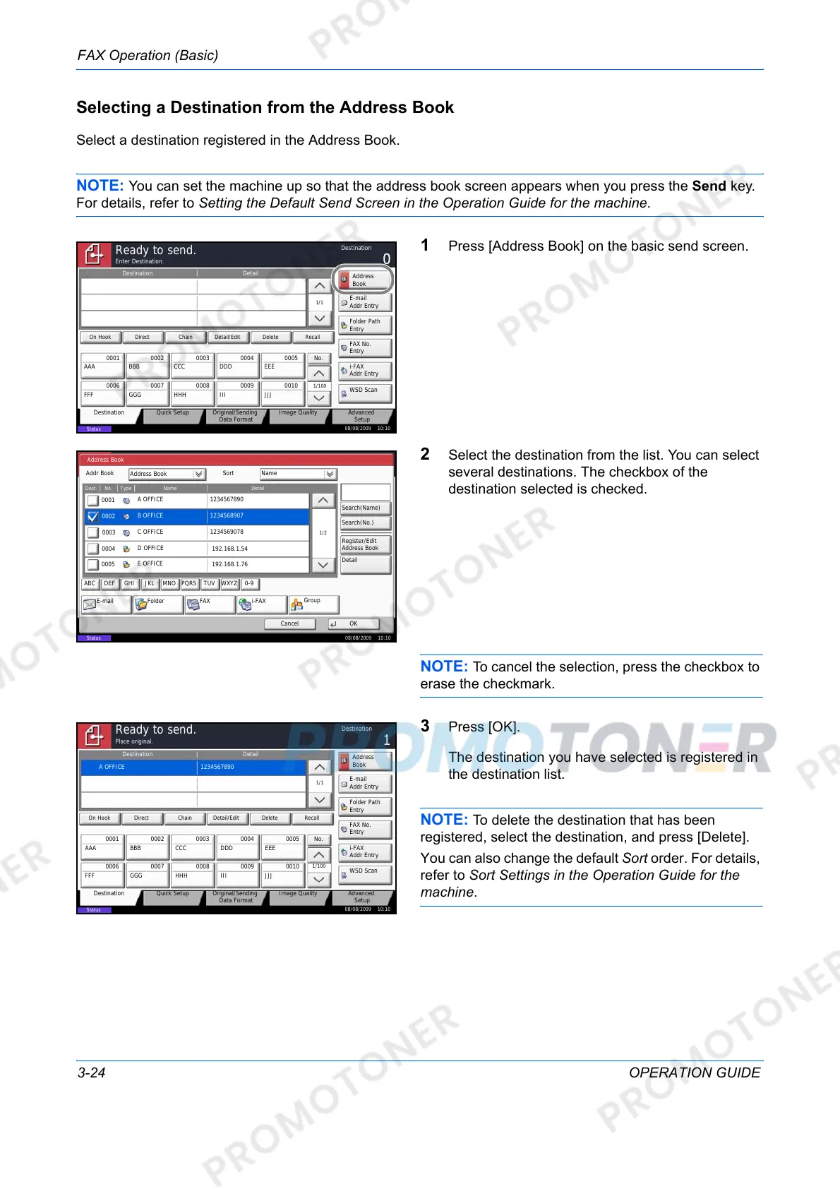 NOTE: You can set the machine up so that the address book screen appears when you press the Send key.