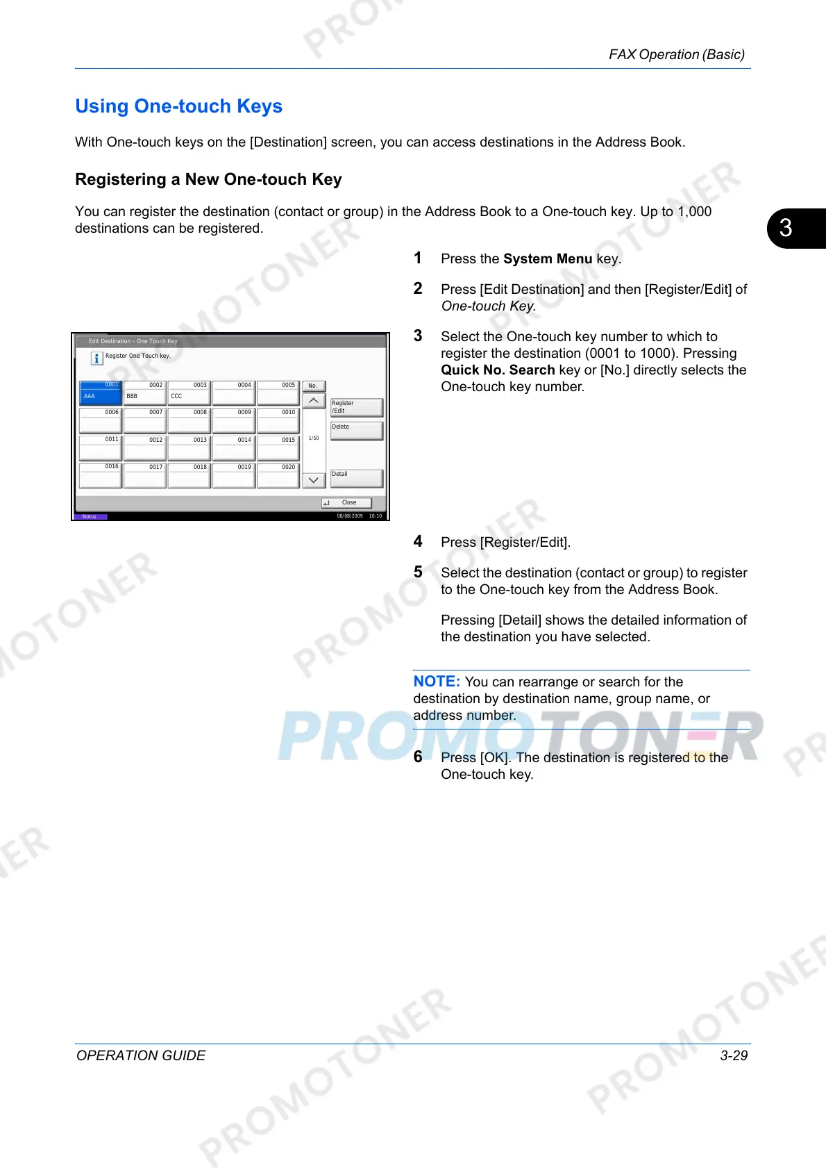 register the destination (0001 to 1000). Pressing