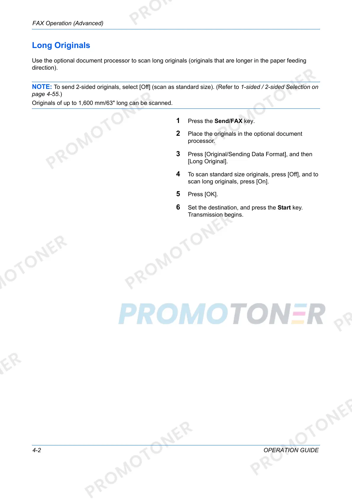 Use the optional document processor to scan long originals (originals that are longer in the paper feeding