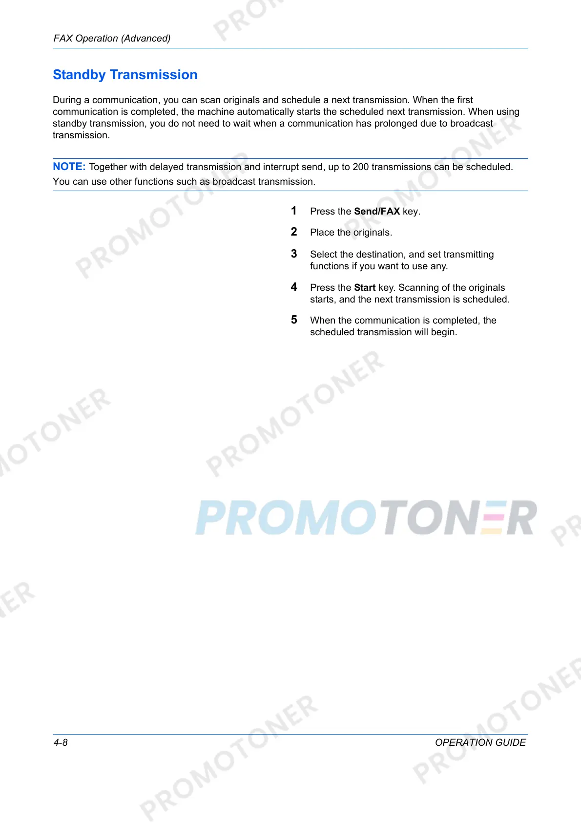NOTE: Together with delayed transmission and interrupt send, up to 200 transmissions can be scheduled.