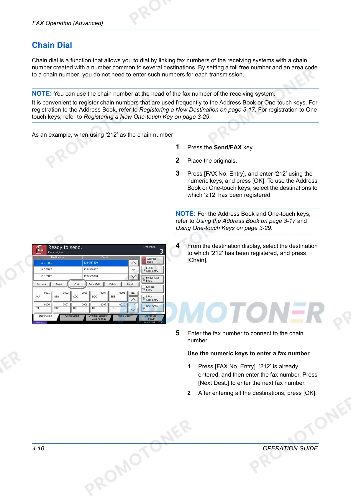 registration to the Address Book, refer to Registering a New Destination on page 3-17. For registration to One-