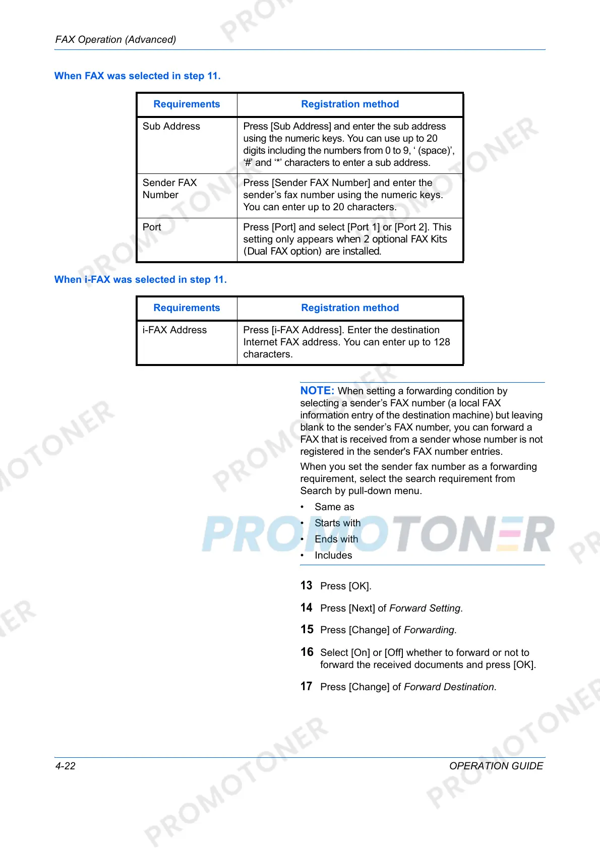 16 Select [On] or [Off] whether to forward or not to
