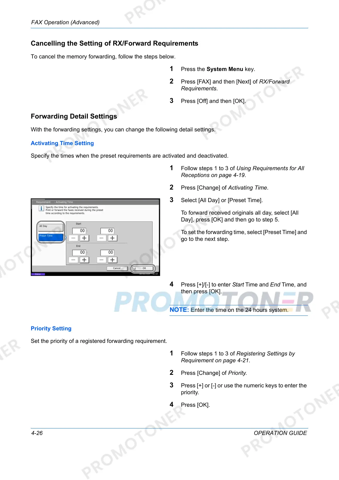 4 Press [+]/[-] to enter Start Time and End Time, and