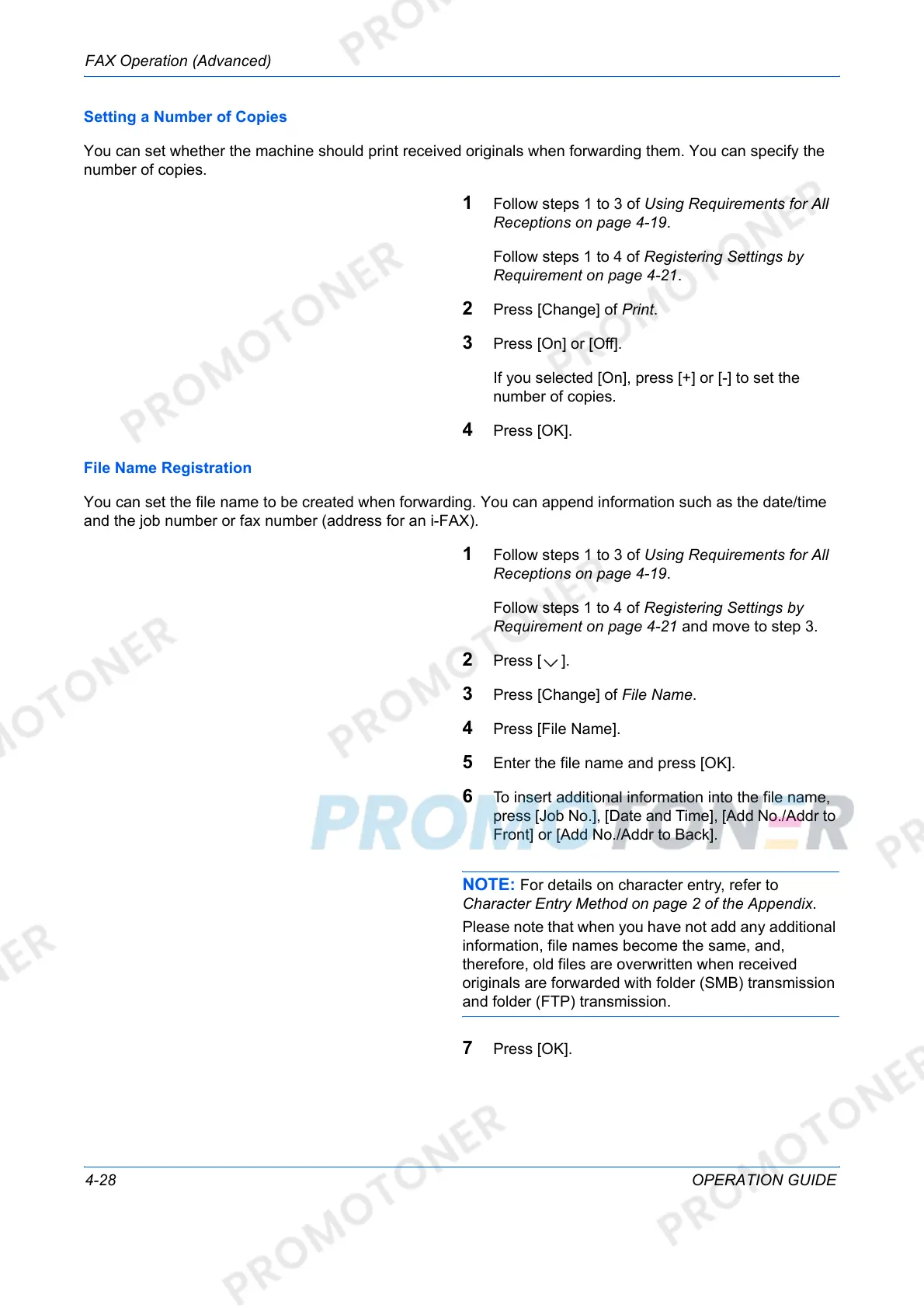 You can set the file name to be created when forwarding. You can append information such as the date/time