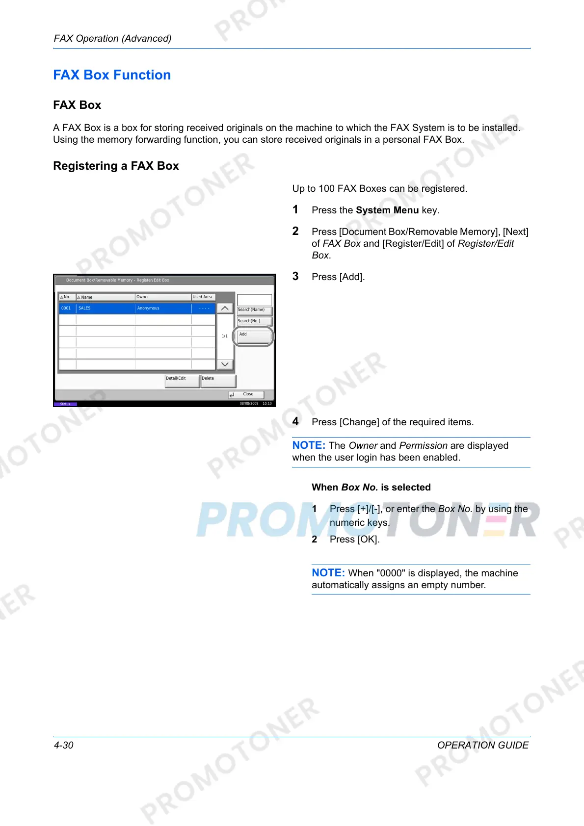 A FAX Box is a box for storing received originals on the machine to which the FAX System is to be installed.