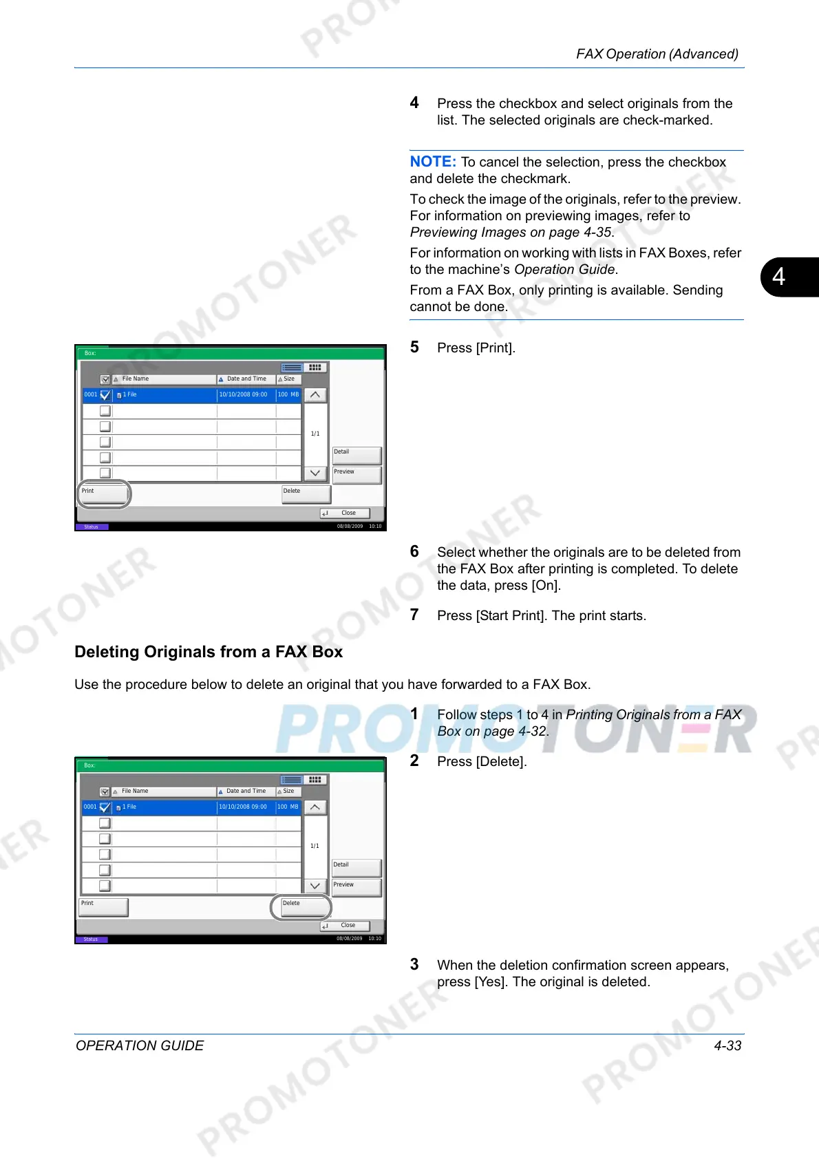 Use the procedure below to delete an original that you have forwarded to a FAX Box.