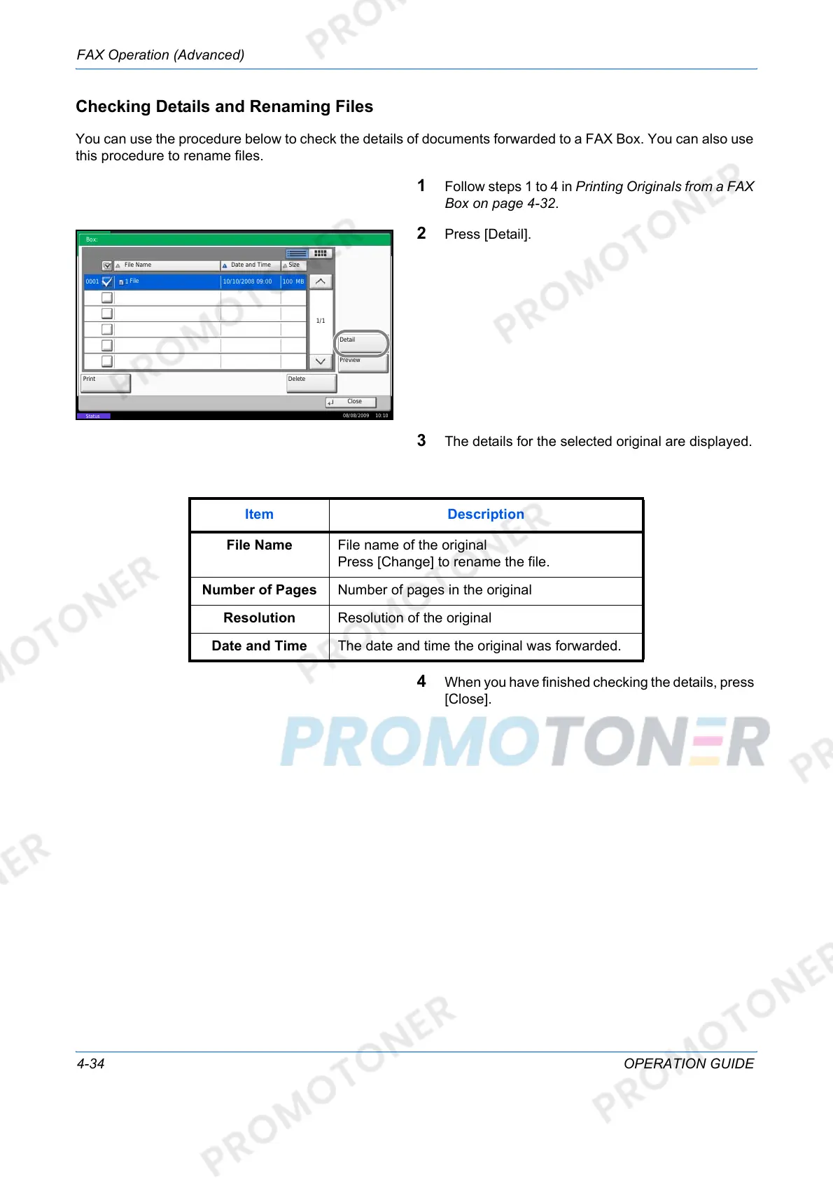 You can use the procedure below to check the details of documents forwarded to a FAX Box. You can also use
