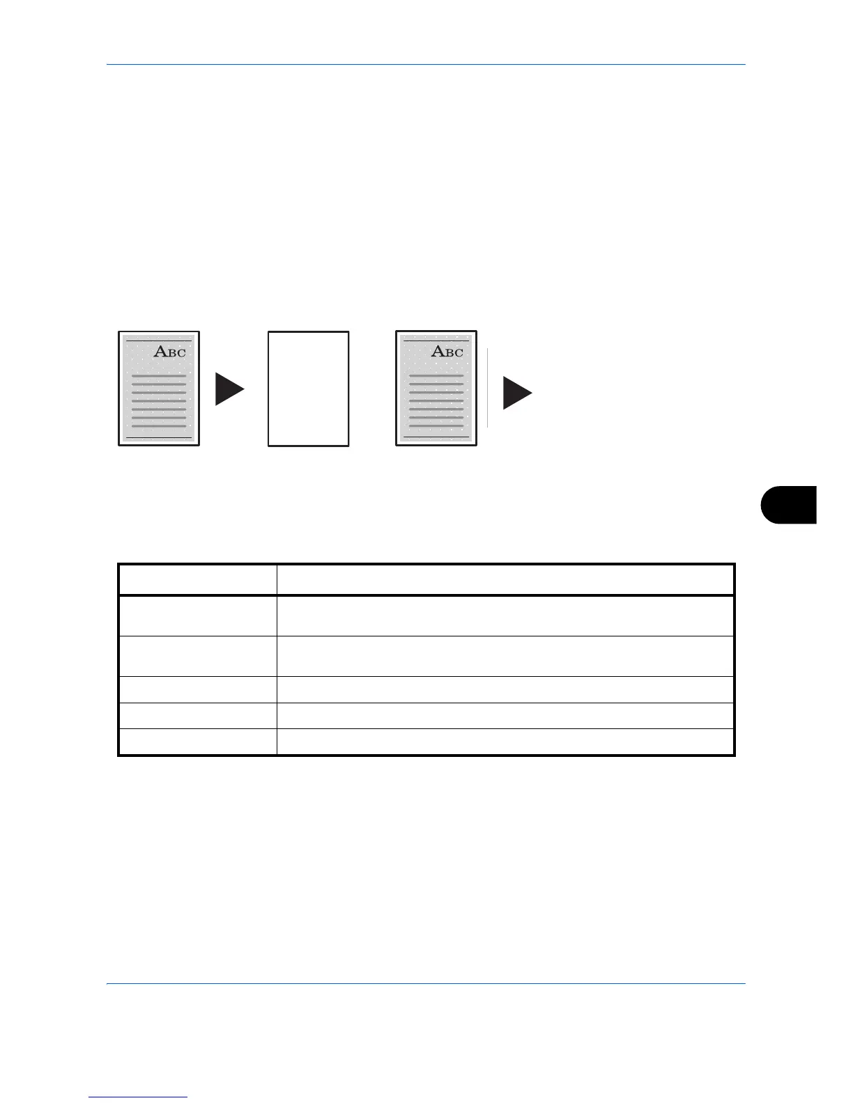 Copy functions Prints the documents in blank when the machine detected the document