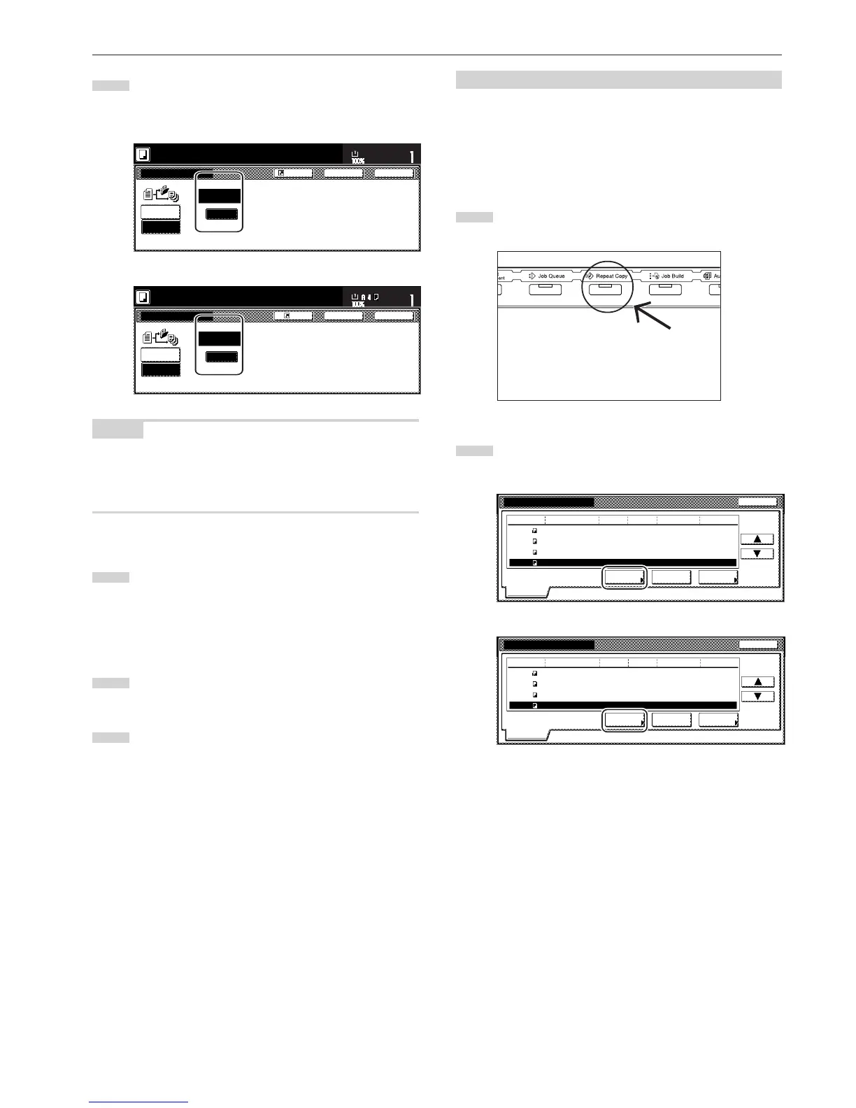 Press the [Repeat Copy] key. The “Modify copy” list will be