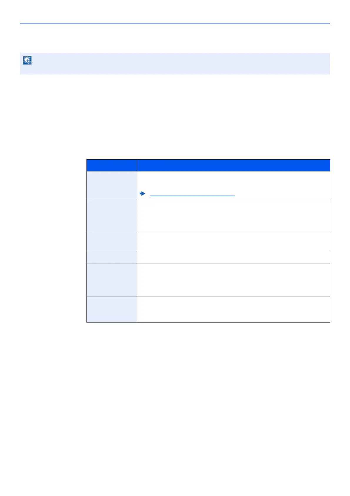The table below lists the items to be set.