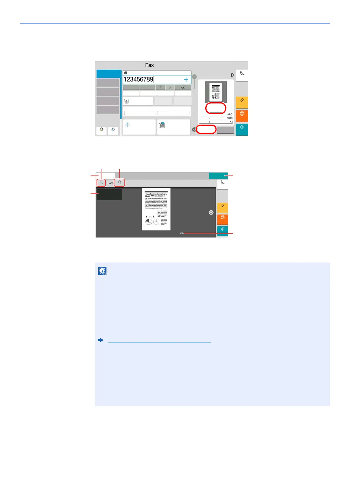 document is read and then the preview for the first page is displayed. Swipe the preview