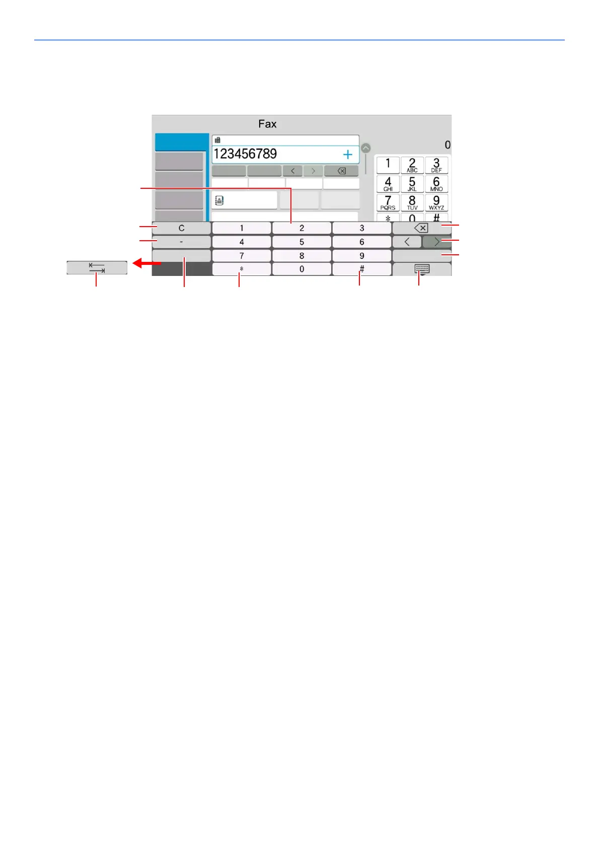 When entering numbers, numeric keys appear on the touch panel if you select the area in which the number is entered.